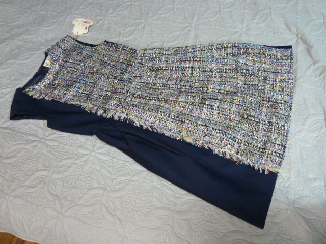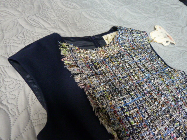 秋 新品タグ付き Chesty チェスティ ネイビーXツイード調MIX 切替 デザイン ミモレ丈 ワンピース 1 M レタパ600円発送 同梱OK