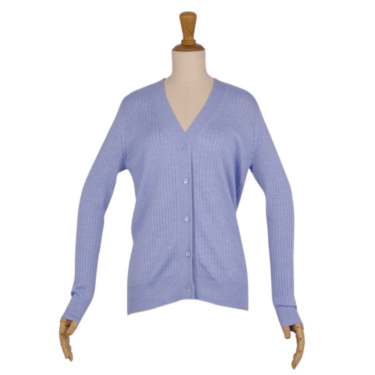 | 美品 ドゥロワー DRAWER カーディガン ニット ロングスリーブ 長袖 カシミヤ シルク トップス レディース 2(M) ブルー |