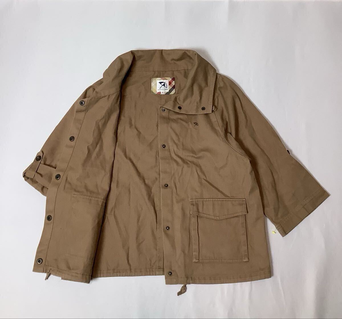 ・裏地無し 7分袖 マーク刺繍 ロールアップ コットン ジャケットの出品になります。