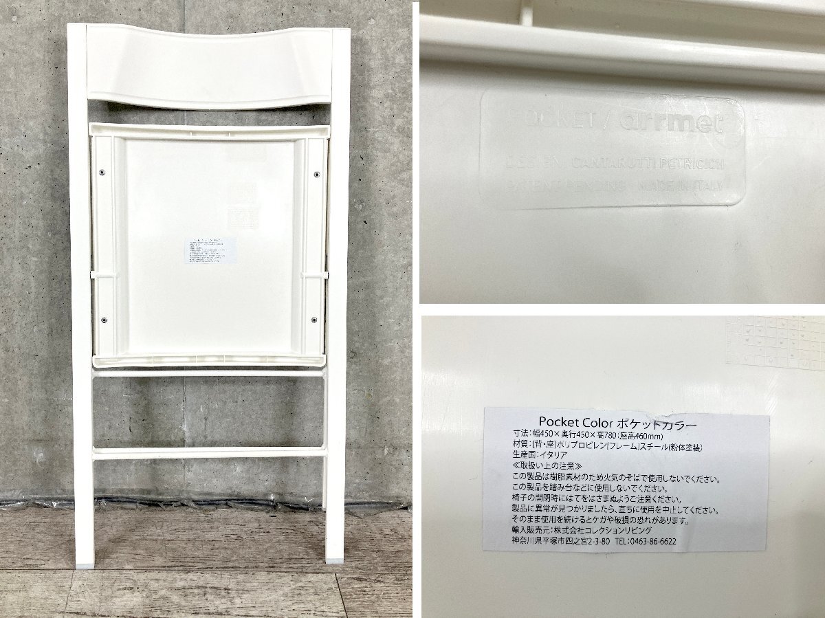 | ■折り畳むとわずか3cmの薄さを誇る『pocket』シリーズ。 こちらはカラーバリエーション豊富な北欧テイストの折りたたみチェアです。タバコケースと同じ程度の厚みなので、ほんの少しの隙間に収納が可能。 背もたれは背中にフィットするようにカーブが描かれ、座面はヒップラインに沿うように少し凹み加工がされています。座った時のホールド性は高く、折りたたみチェアでありながらも、座る人に快適感を与えます。 新品定価:¥24,200(税込み) ■色/ホワイト ■サイズ/ W450 x D450 x H780(SH460) ■重量:5.25kg ■状態/全体的に使用に伴う細かいすれ傷がございます。 雰囲気を損ねるダメージはなく、まだまだ気持ちよくお使い頂けます。 中古品ということをご理解頂き、ご入札をお願い致します。 |