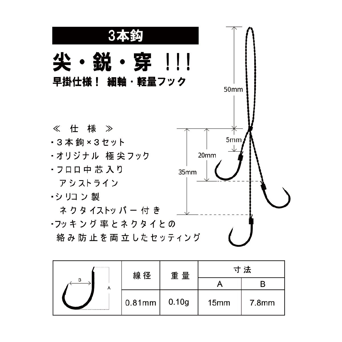 アシストフック+ショートカーリー:ブラッドオレンジ×6本