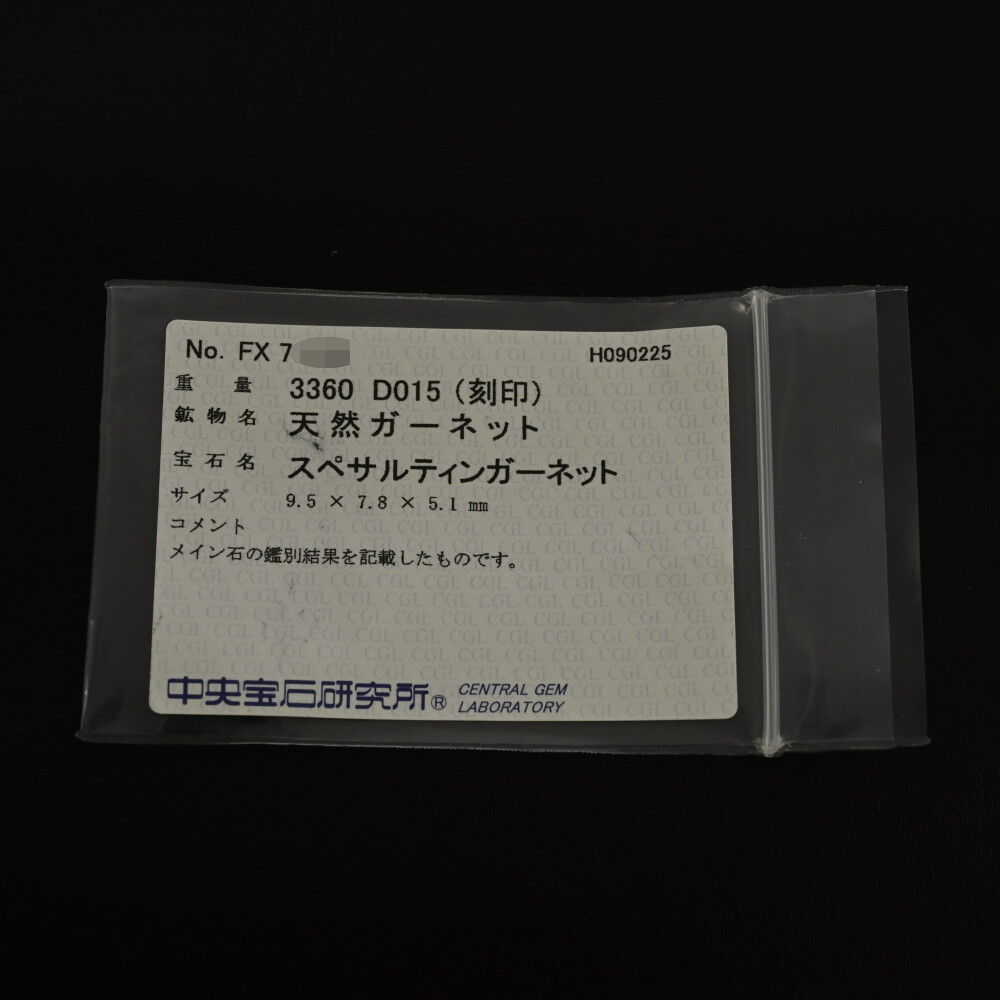 | GA3.36ct/FD:0.15ct/スペサルティンガーネット・ガーネット・ダイヤモンドリング・指輪/Pt900-6.6g/12号/#52/翌日配送可 お問合せ番号 ■589037 (RGAA0610L) | |