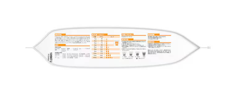 たんぱく質15.5%以上、脂質8.5%以上12.5%以下、粗繊維15.0%以下、灰分8.0%以下、水分10.0%以下