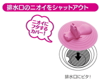 ・排水口にピッタリフタができ、ニオイを抑える、カバの排水口カバーです。