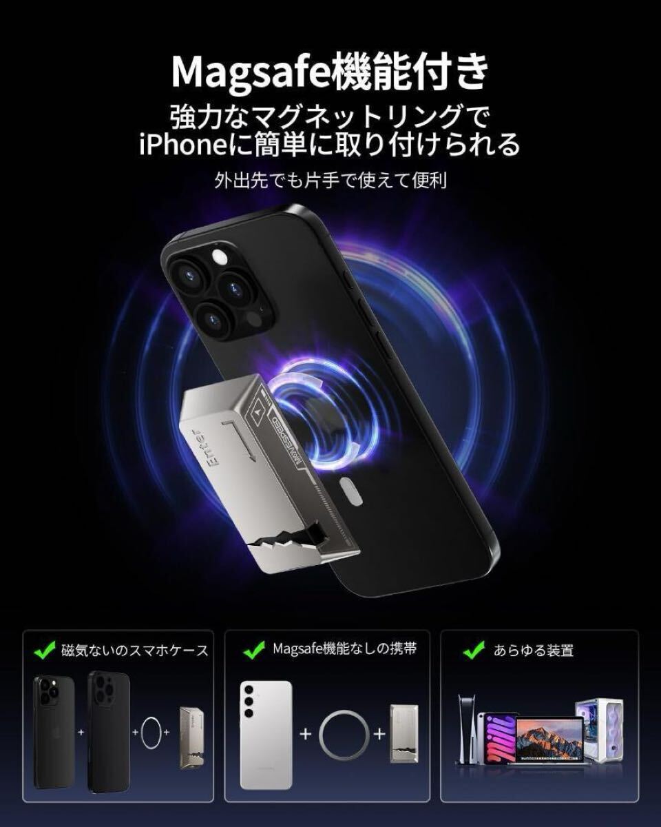 【MagSafe磁気機能・創作の自由へのアクセス】iPhone 15/16専用設計で、MagSafe磁気機能を搭載します。簡単に貼り付けるだけでiPhoneとしっかり固定。4K動画撮影時でもハードドライブを手に持つ必要がなく、両手が自由になり、すべての精彩な瞬間を思う存分に捉えることができます。コンパクトで洗練されたデザインは、iPhoneと完璧にマッチし、全新しい「撮りながら保存」というdoubleの素晴らしい体験を実現します。