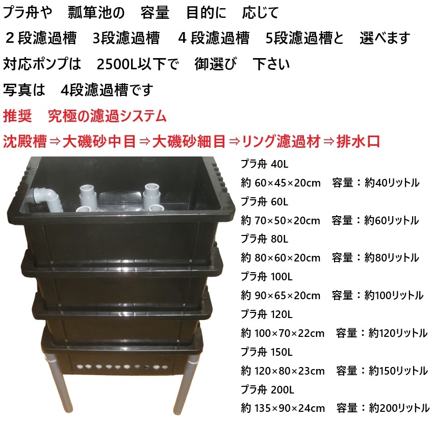用途 目的に 応じて 2段 3段 4段 5段濾過槽と