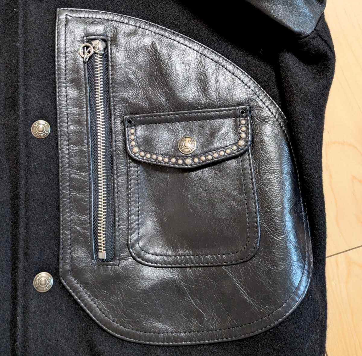 ショット スタジャン レザーアーム ディポケット バーシティジャケット 本革 本皮