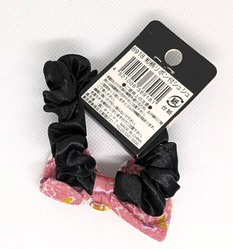 こちらは、和柄デザインが施されたリボンシュシュです。