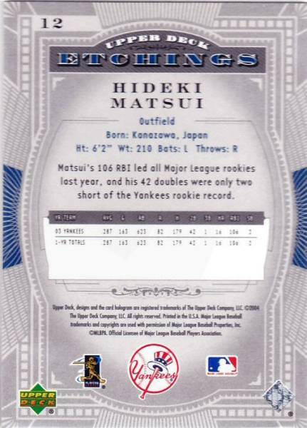 ●2004 UD Etchings 【松井 秀喜/Matsui】 通常版カード:No.12
