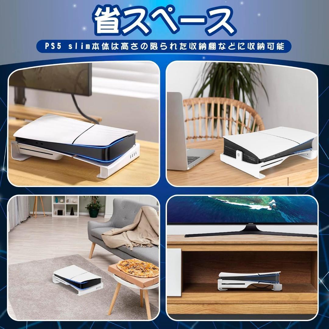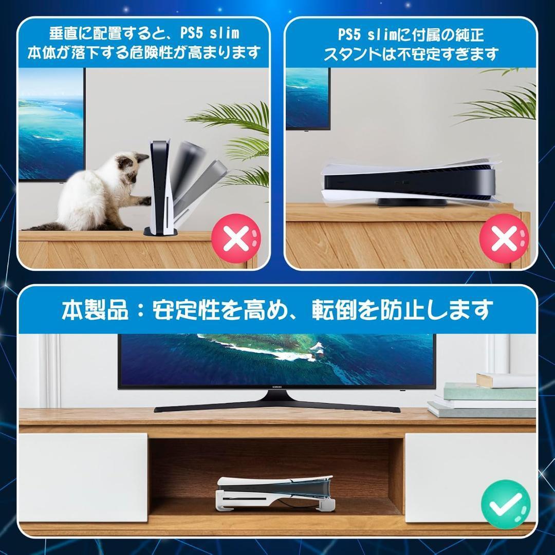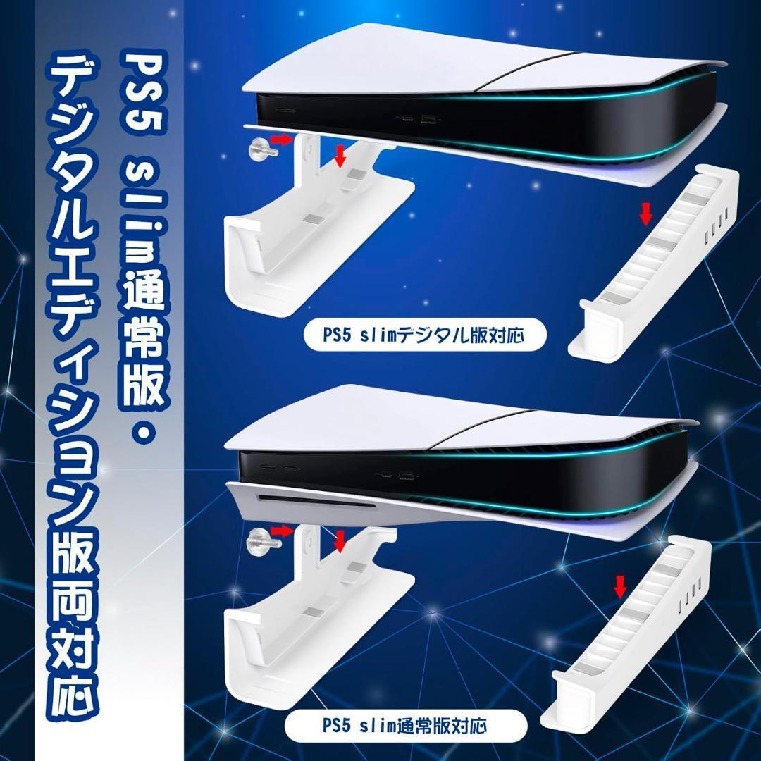 ※PS5 Pro/PS5 Slim 本体は付属しません。 ※お値打ち価格でお譲りするため、箱から出してゆうパケットプラス専用BOXで発送いたします。 【PS5 Slim通常版・デジタルエディション版両対応】PS5 Slim 横置きスタンドは、PS5 Slimの通常版とデジタルエディション版の両方に対応。高品質のABS素材で作られ、洗練されたデザインがリビングルームやゲームスペースにスタイリッシュなアクセントを加えます。 【安定性と耐久性の向上】PS5 Slim ベーススタンドは、PS5 Slimをしっかりと支える特別設計。滑り止めの足がついており、どんな表面にも安定して設置可能で、長時間のゲームプレイでもコンソールが安全に保たれます。 【放熱性能の向上】PS5 Slim 横置き スタンド使用により、PS5 Slim本体の下に空間ができ、空気の流れが改善。これにより、放熱穴からの熱が外へ効率よく排出され、コンソールの使用寿命を延ばすことが可能です。 【省スペースデザイン】このスタンドを使用することで、PS5 Slim本体を収納棚やキャビネットに収納でき、スペースを有効活用しながら部屋を整理整頓できます。 【取り付け簡単】PS5 Slim本体を横に置き、スタンドを両側に取り付け、ネジで固定するだけ。取り付け後はコンソールをしっかりと固定し、移動や振動にも強いです。 【互換性】この横置きスタンドは、PS5 Slim ディスク版およびデジタル版、PS5 Pro デジタル版に対応しています。PS5/PS5 Pro ディスク版には対応していません。 Z809