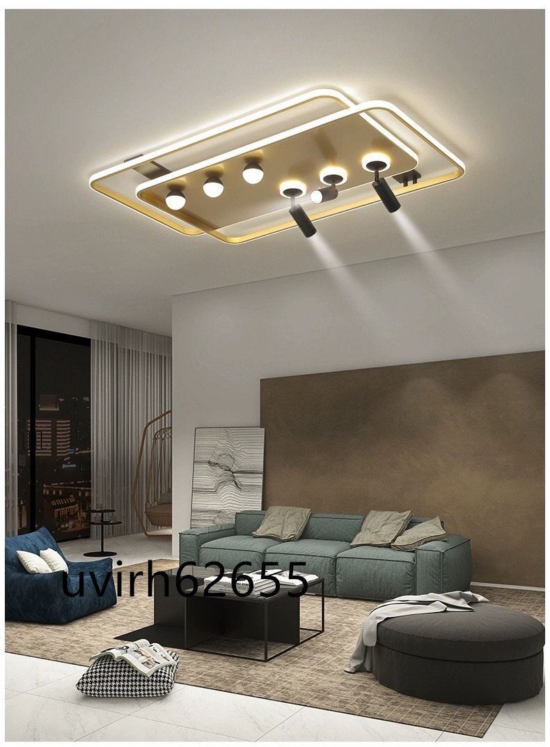 新品推薦★シーリングライト LEDシーリングライト スポットライト付 寝室照明 長方形 金色 リビング照明