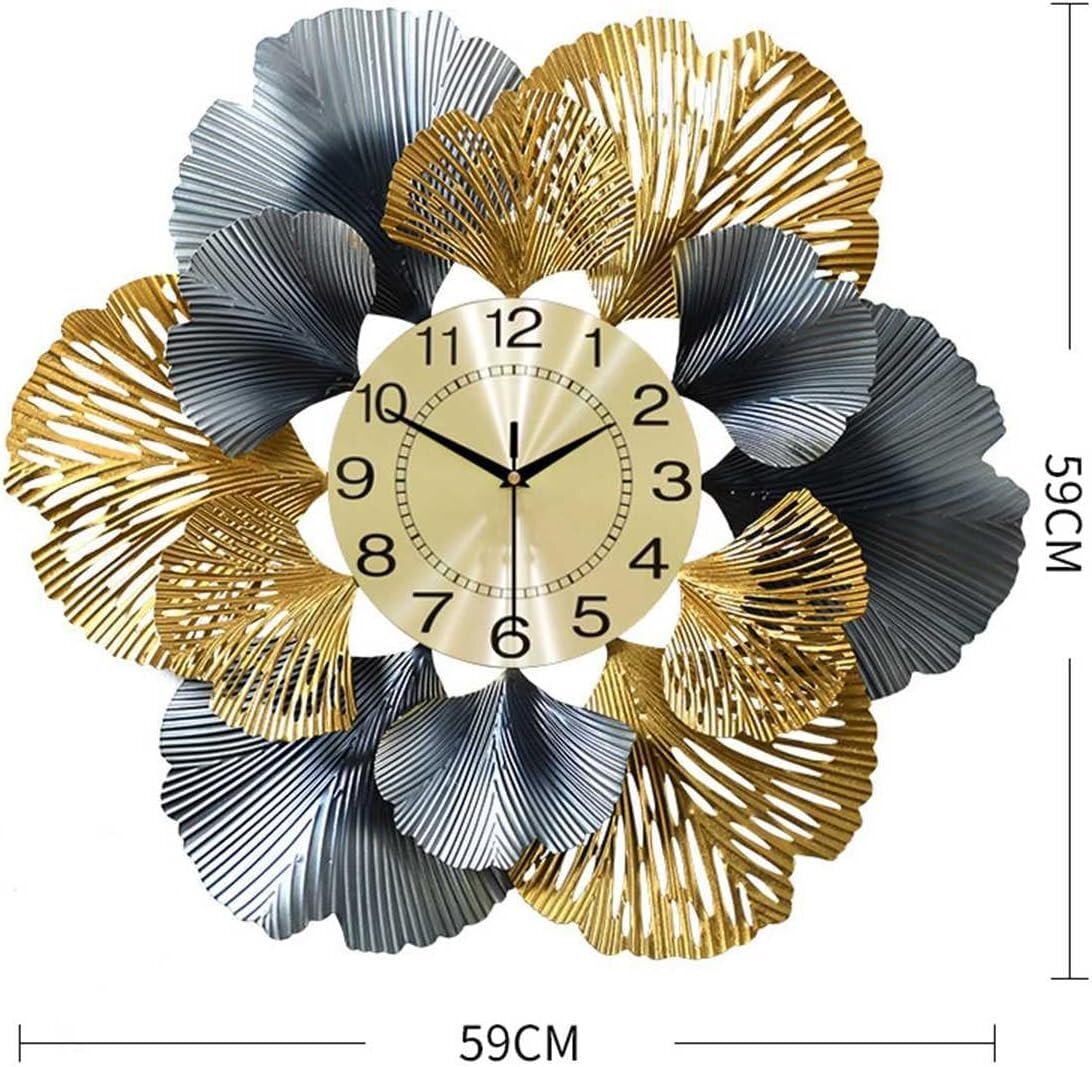イチョウの葉の装飾掛け時計、モダンなシンプルなライトラグジュアリー時計 壁掛け、静かな壁掛け時計、モダンな家の装飾