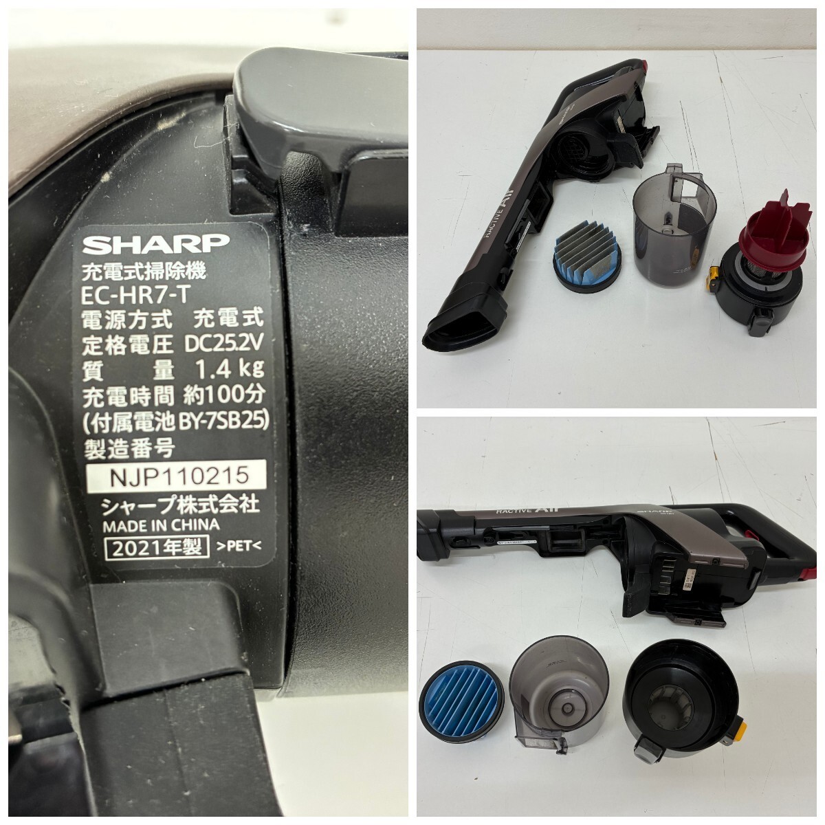 【ジャンク】 SHARP EC-HR7-T 充電式掃除機 簡易清掃済み 2021年製 シャープ スティック クリーナー サイクロン【AJ-0608】