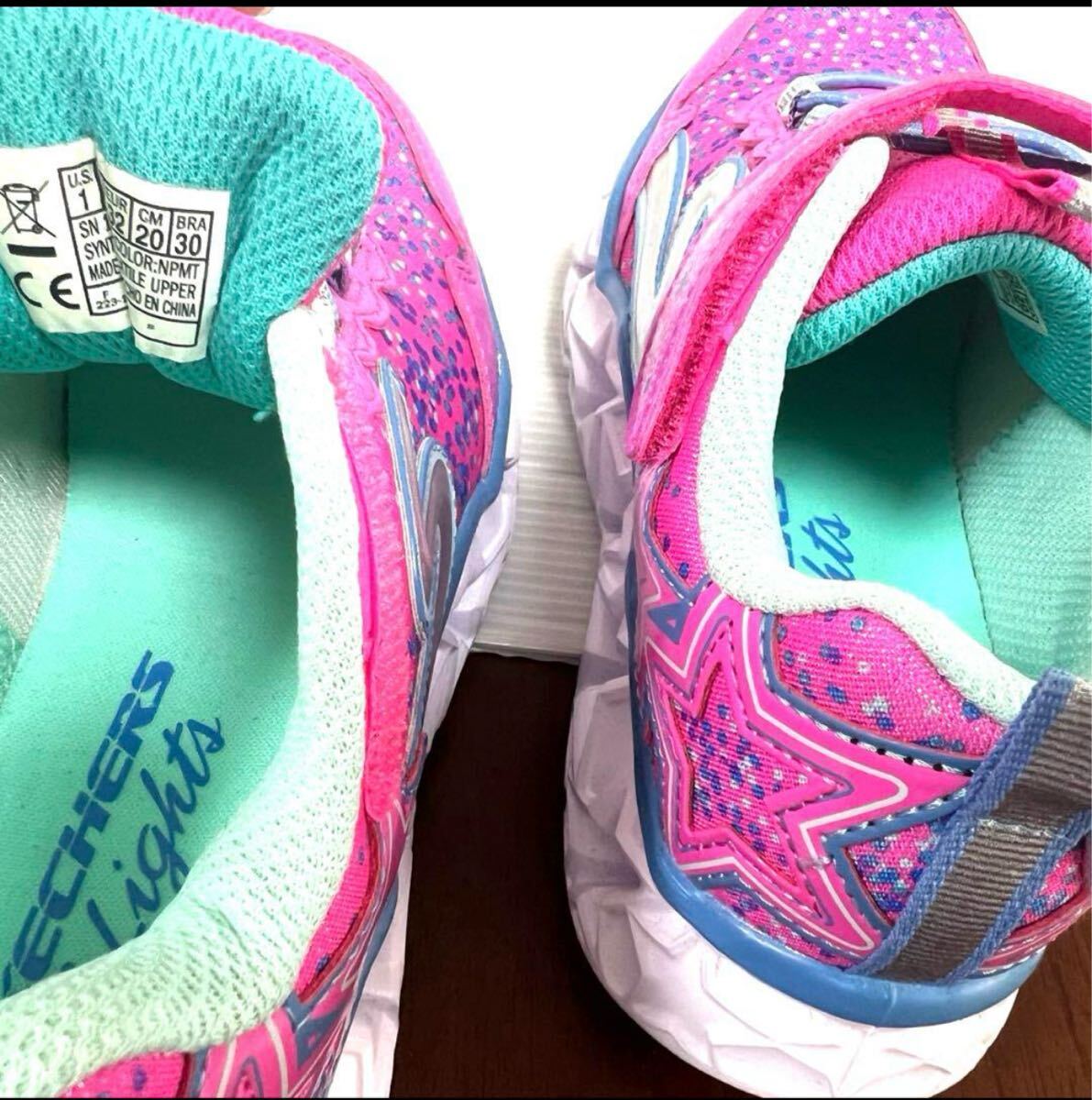 アメリカ購入のスケッチャーズ Skechers 、片側だけ履いてサイズOK、ライトもきれい…とのことで購入し、帰国してよく見たら右側のライトの点滅がありませんでした。直せるのか壊れているのかわからないのですが、そのうちすぐサイズアウトしてしまいましたのでこのまま出品いたします。