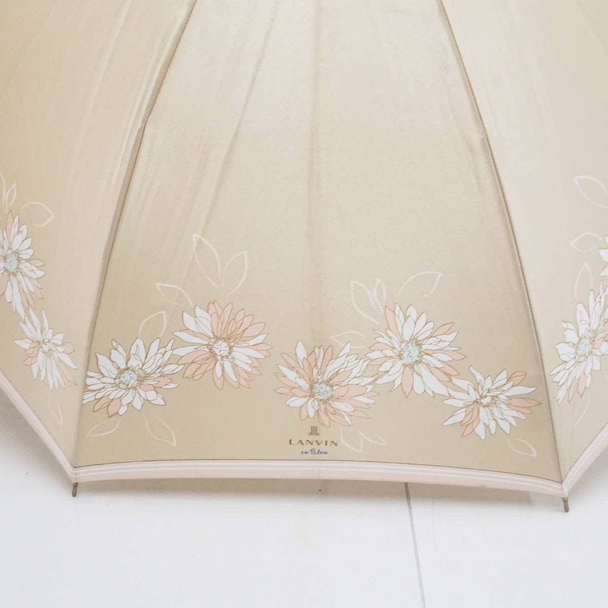 ライトベージュの生地をベースに、フェミニンなフラワーを描いた「ランバンオンブルー」のアンブレラです。