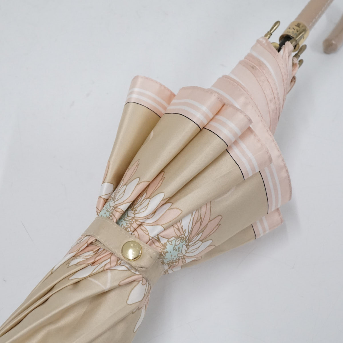 耐風傘 LANVIN en Bleu ランバンオンブルー USED品 フラワー ベージュ ジャンプ 60cm A3226
