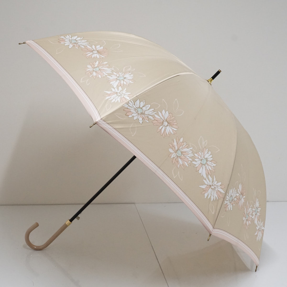 ライトベージュの生地をベースに、フェミニンなフラワーを描いた「ランバンオンブルー」のアンブレラです。