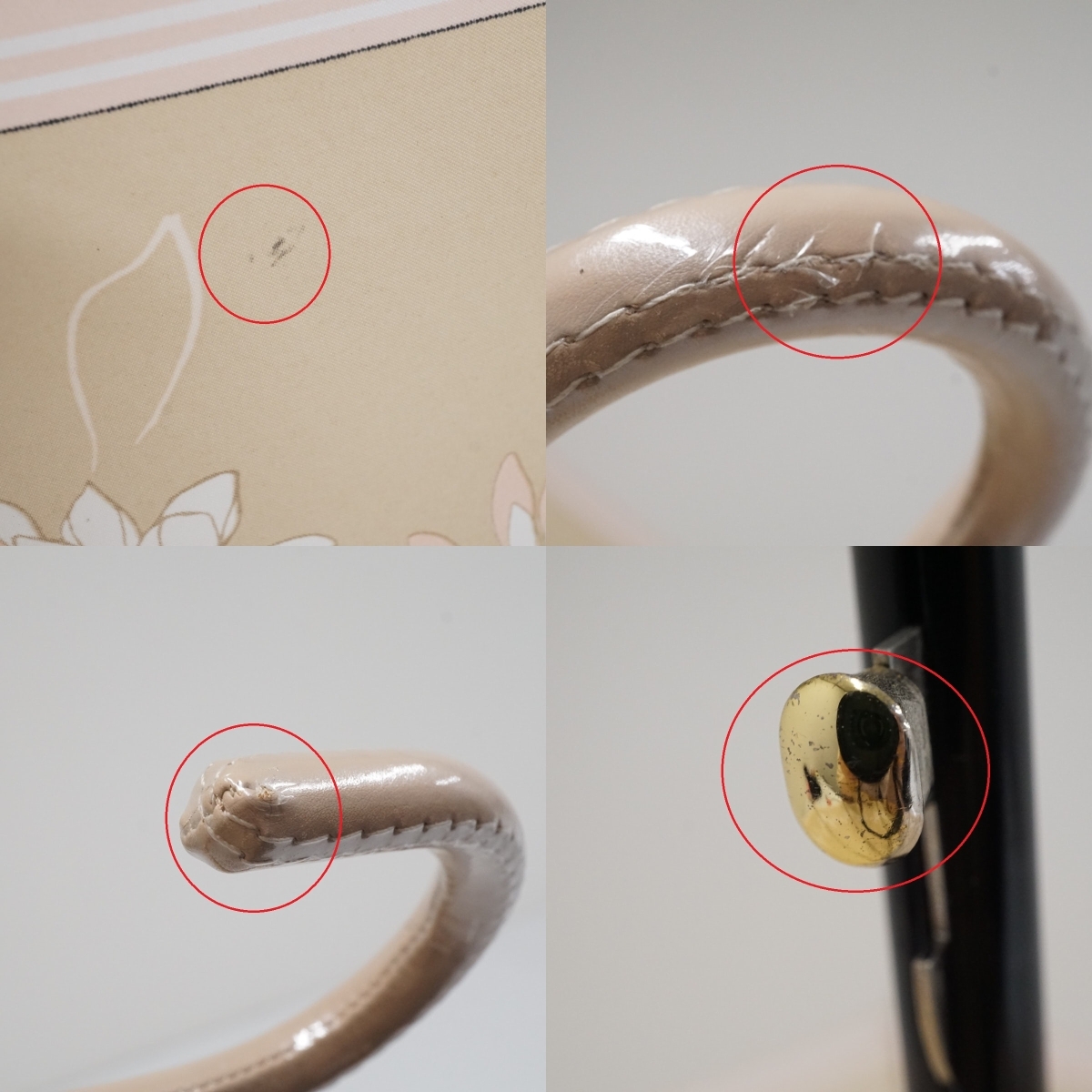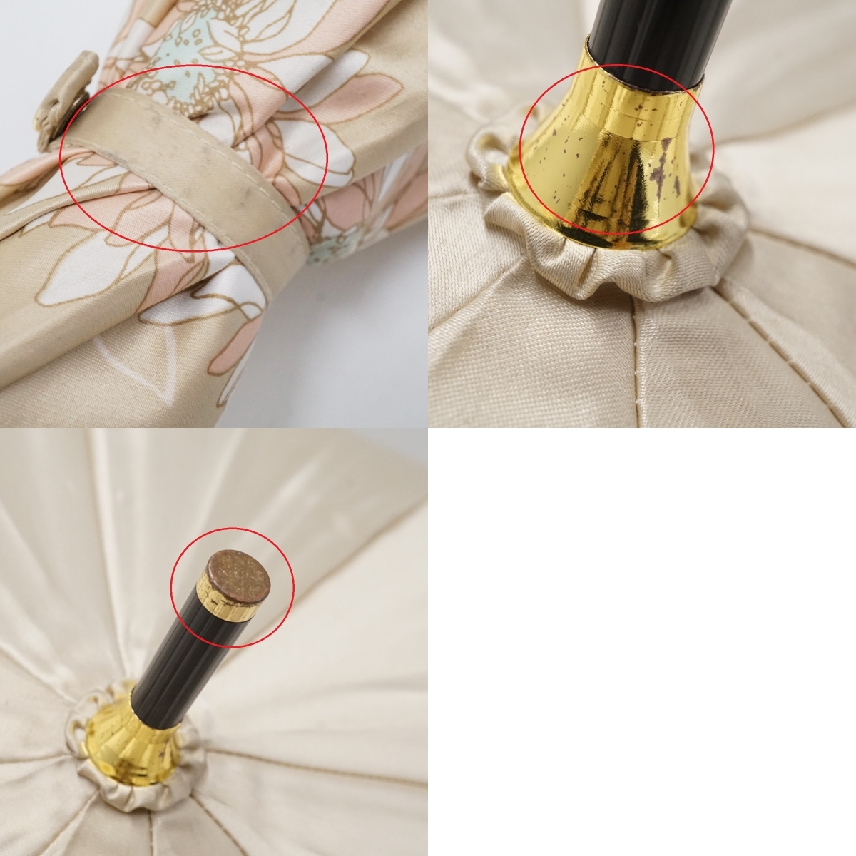 耐風傘 LANVIN en Bleu ランバンオンブルー USED品 フラワー ベージュ ジャンプ 60cm A3226