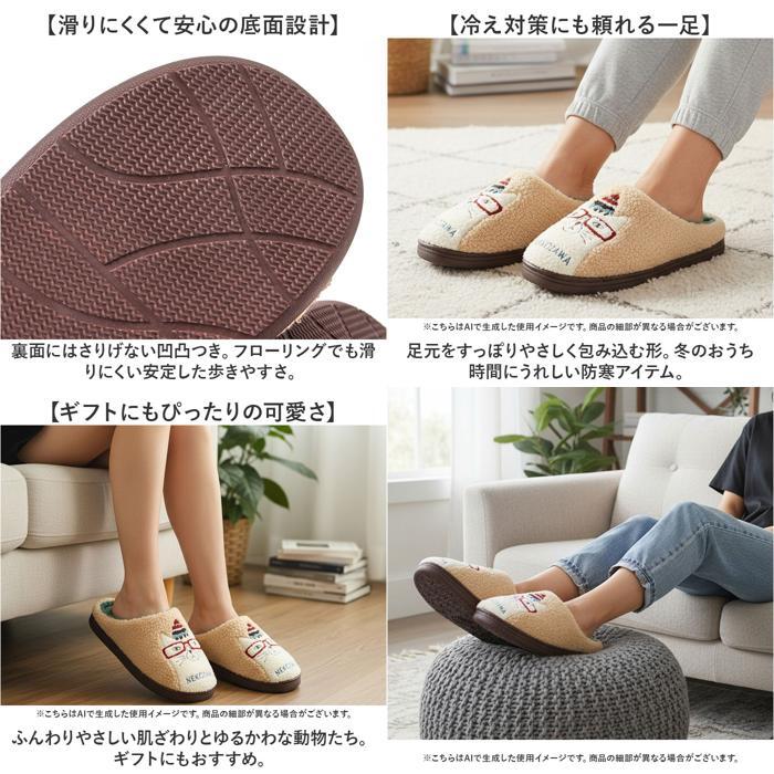 商品説明 | ・・【ゆるかわアニマルでぬくもり時間】 ・寒い季節の足元に、やさしさをプラス「モコモコルームシューズ」が登場。 ・【包まれるようなぬくもり】 ・内側はふわふわ毛足の長い素材。寒い日も足元からほっとするあたたかさ。 ・【ゆるっと癒しのデザイン】 ・もこもこの相良刺繍が愛らしい♪見てるだけで気持ちがゆるむアニマルたちの世界観。 ・【長時間でも快適なクッション性】 ・足底にはTPR樹脂を使用。しっかりとした弾力で、ずっと履いていても心地よいフィット感。 ・【滑りにくくて安心の底面設計】 ・裏面にはさりげない凹凸つき。フローリングでも滑りにくい安定した歩きやすさ。 ・【冷え対策にも頼れる一足】 ・足元をすっぽりやさしく包み込む形。冬のおうち時間にうれしい防寒アイテム。 ・【ギフトにもぴったりの可愛さ】 ・ふんわりやさしい肌ざわりとゆるかわな動物たち。ギフトにもおすすめ。 |