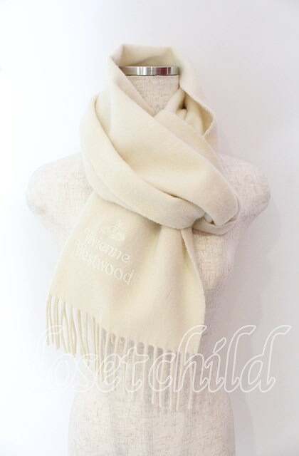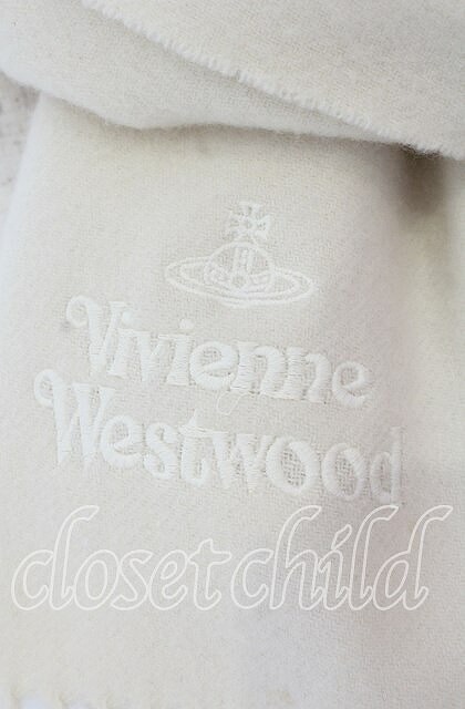 ヴィヴィアンウエストウッド 中古 / ロゴ刺繍マフラー ホワイト O-25-09-21-100-gd-YM-OS