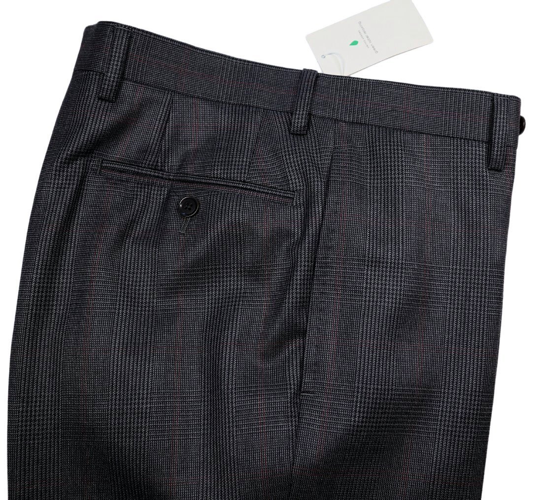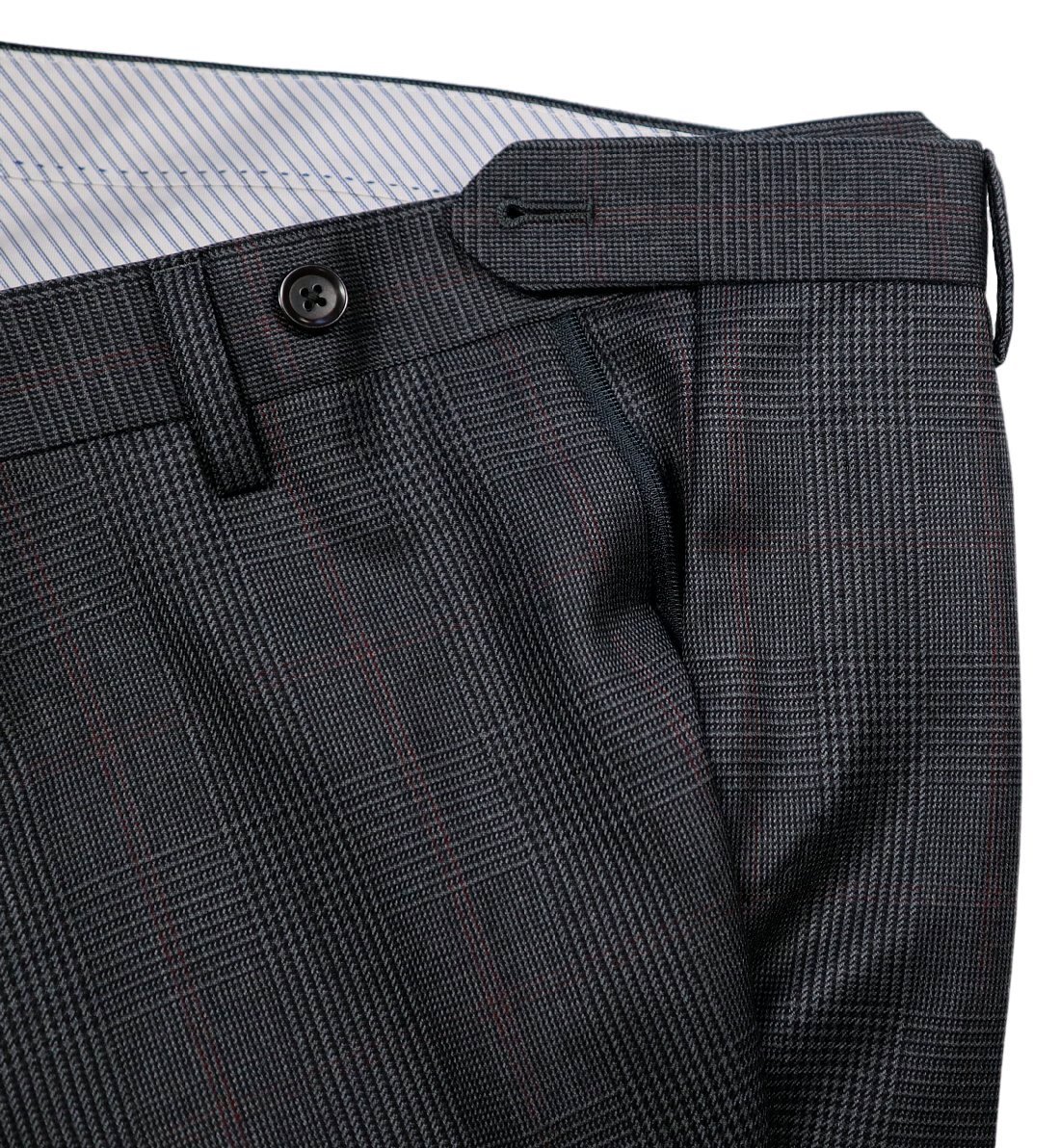 ノープリーツ ヒップ・2ダーツ & ボタン付き玉縁ポケット D管留め 股シック布付き バックV字スリット 本ナットボタン ライニング・シャツ生地仕様 内側マーベルト・プリーツ入り 膝裏付き フロントフック & ボタン式 天狗 ジップフライ