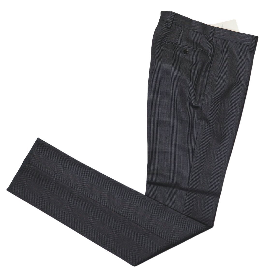 モダンな細身シルエットに、立体的な胸まわりと薄パッド入りの美しいショルダーライン、綺麗に上った襟や高めの位置でシェイプしたウエストライン、最高級素材ならではのドレープの美しさで、モダンでありながらも仕事がデキる都会のエグゼ的な雰囲気に。細身ながら、職人によるハンドとアイロンワークを駆使することで、丸みのある柔らかなフィット感を提供してくれます。パンツもエレガントさを出しながらも美しくテーパードしたノープリーツモデルです。
