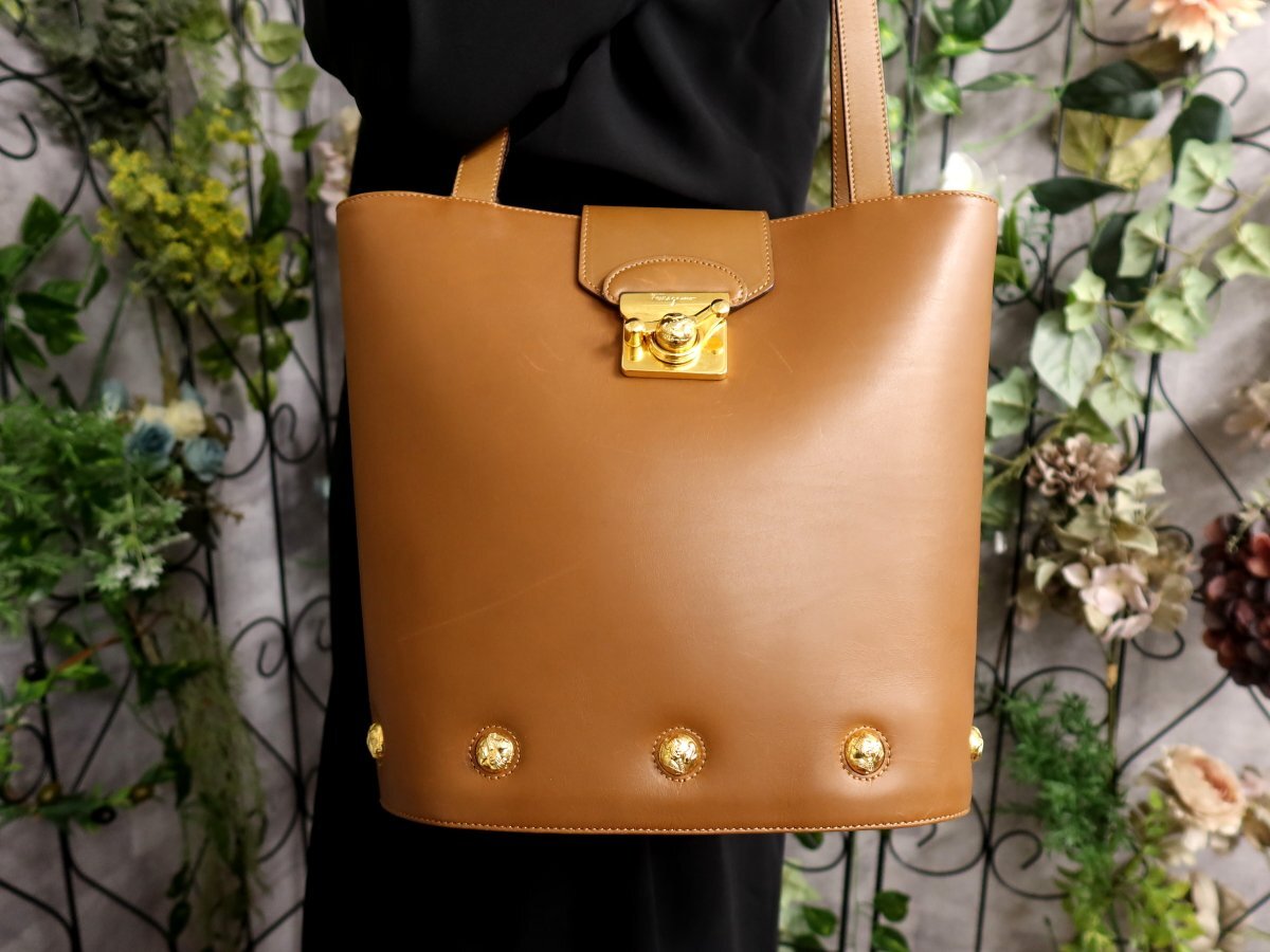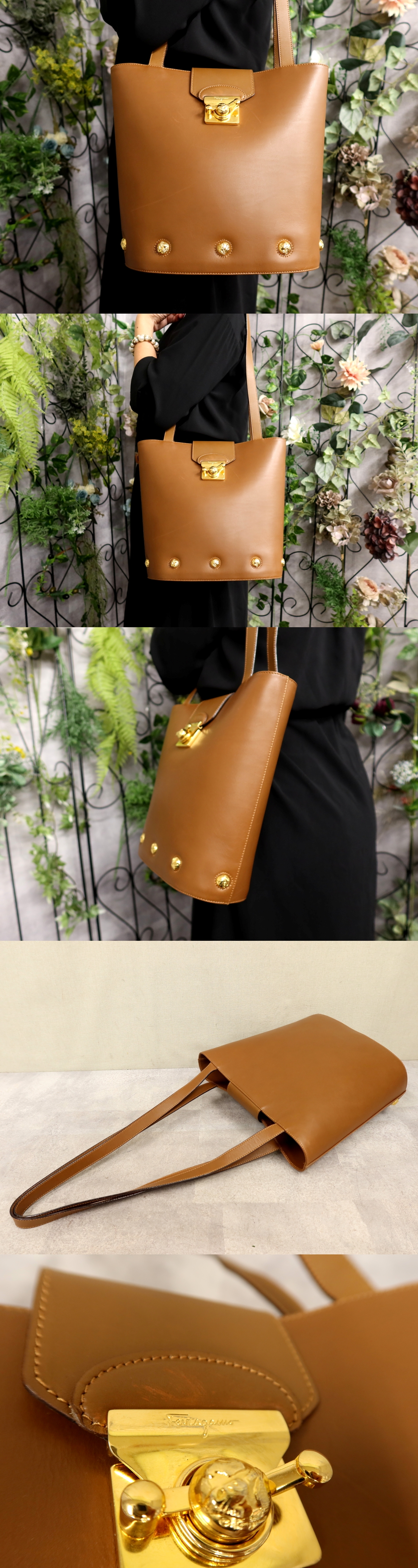 ●超美品●Salvatore Ferragamo フェラガモ●ヒールモチーフ●カーフ レザー 本革●ショルダー バッグ●ブラウン●ゴールド金具●Js61039