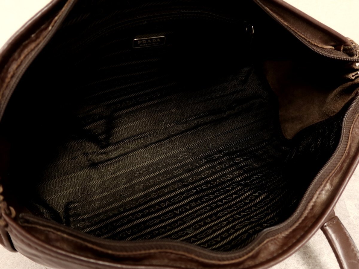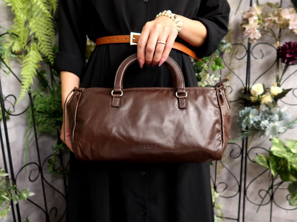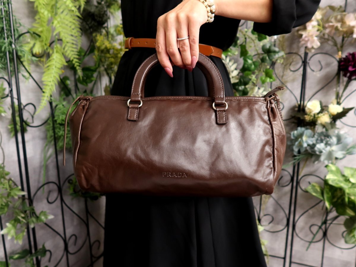 ●超美品●PRADA プラダ●ロゴ型押し●ナッパ レザー 本革●ハンド バッグ●ブラウン●シルバー金具●イタリア製●収納 かばん●Js60884