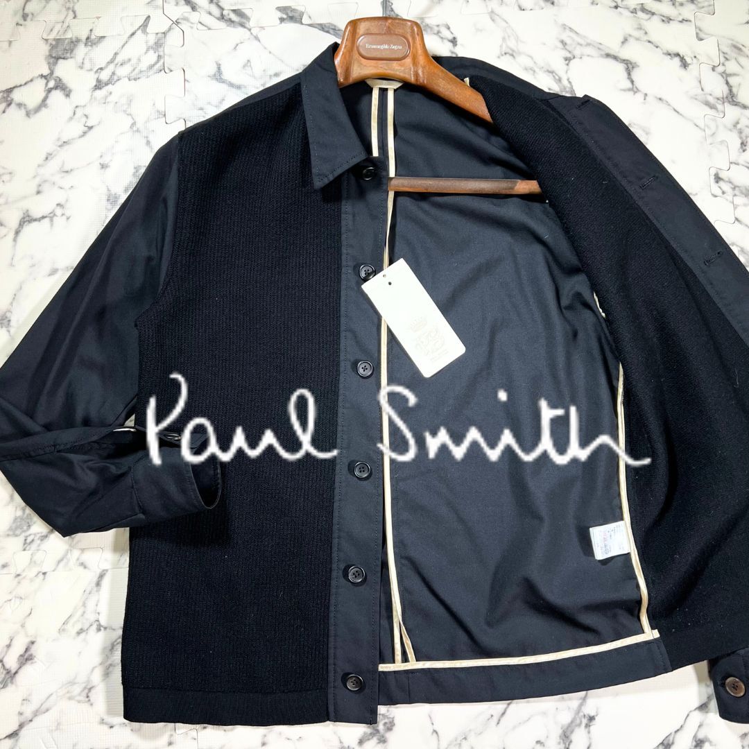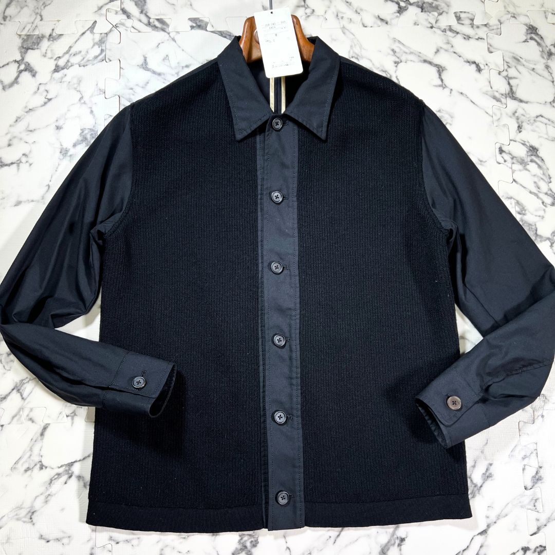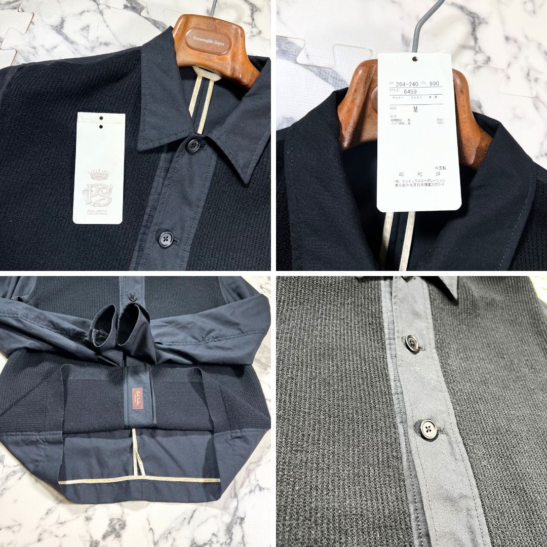 【新品未使用タグ付】ニット切替/ドッキング●Paul Smith ポールスミス コレクション 長袖 ウール シャツ ブラック 黒 羊毛 メンズ 秋冬 M