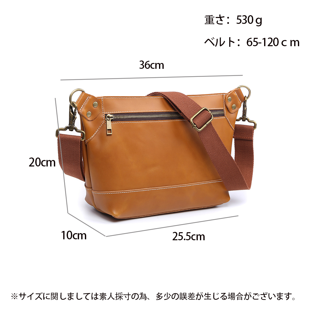 上質大容量 ショルダーバッグ メンズ ボディーバック ウエストポーチ ハンドメイド 牛床革 軽量 通勤 男女兼用 キャメル A01