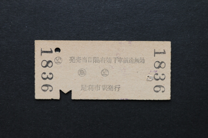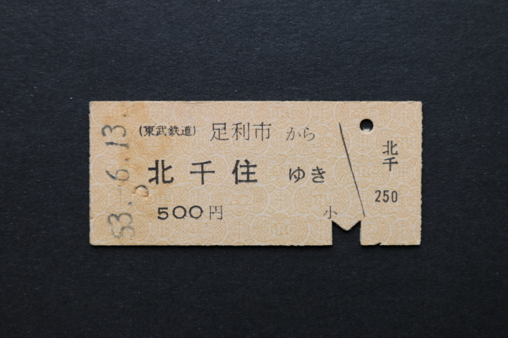 東武鉄道 乗車券 足利市から 北千住ゆき 500円 急行用
