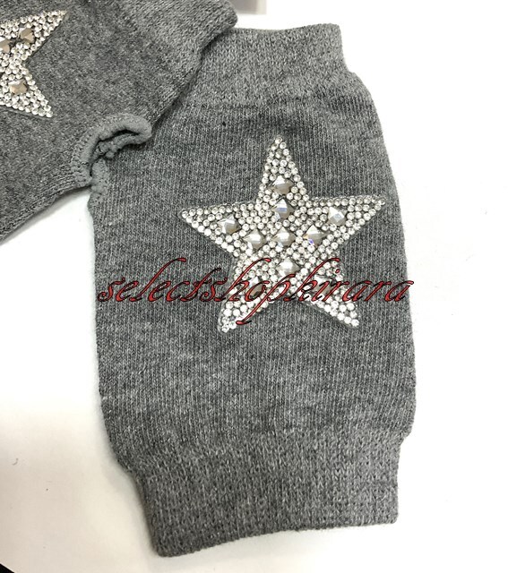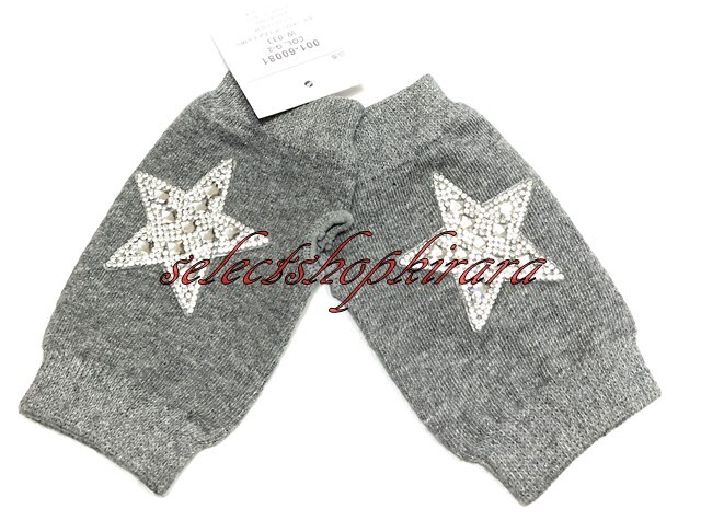 2025新作☆キラキラビジュー付き綿混ニット指抜き手袋☆グレー/星