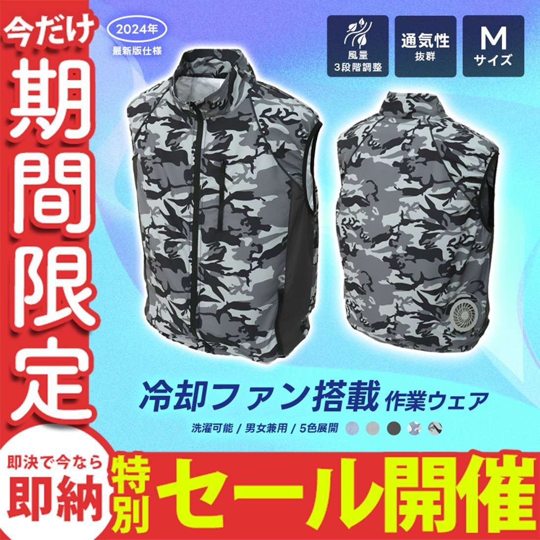 暑い夏の熱中症対策に!最強空調作業服! 2基のファンで風を取り込み、衣服内を巡って全体に送風します。 市販のモバイルバッテリーで動作します。 3段階の風量調整可能でいつでも快適! \2024年改良しました/ ・裾を幅広ゴムにし風を逃さない ・反射ライン付で夜道も安心 ・ポリエステル100%で撥水、速乾! 等 作業ウェアはご家庭の洗濯機で洗えます。 汗をかいても汚れても、いつでも綺麗な状態で着れます♪ この夏、いろいろなシーンで大活躍間違いなし! レジャーやアウトドア、運動時、屋外での作業・仕事、お出かけ時など。 【商品詳細】 カラー:迷彩(グレー) サイズ:Mサイズ 素材:ポリエステル100%(生地)、ABS(ファン) 風量調整:3段階(弱風 / 中風 / 強風) 稼働時間:約5~13時間(12,800mAhの場合) ※稼働時間はバッテリーの状態により時間が変わります 【商品内容】 本体、ファン×2、ケーブル×1、日本語取扱説明書 (ファン付き作業服 空調服ベスト ファン付きベスト 空調ファンベスト 作業服 涼しい 暑さ対策 人気 おすすめ 安い 送料無料 WEIMALL)