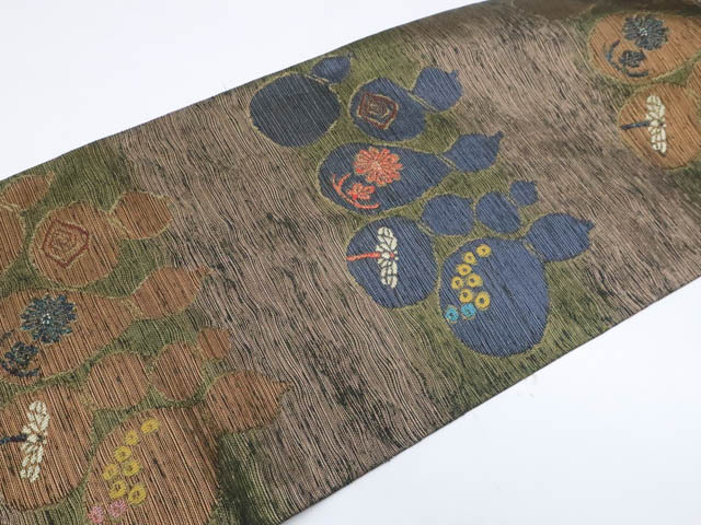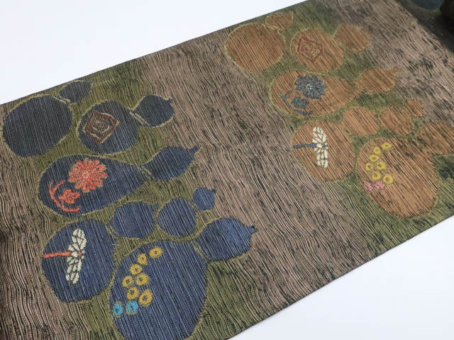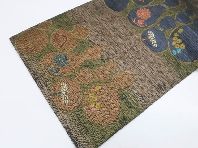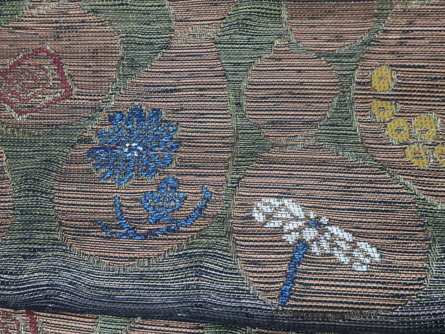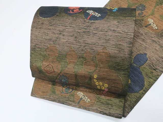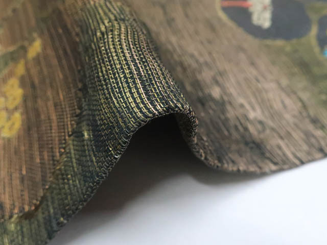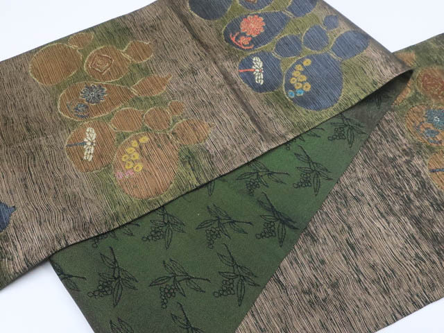 リサイクル商品の為、折山あとがございますがご着用いただけると存じます。 地色は 黒 緑です。 1枚目の画像が近いお色かと思われます。 素材は正絹です。 |
