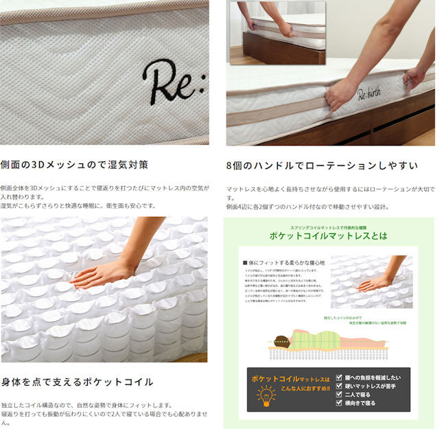◆マットレスの端部分に落ち込みや型崩れを防ぐエッジサポートあり