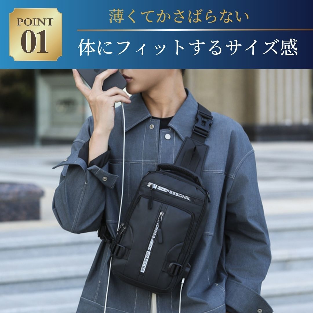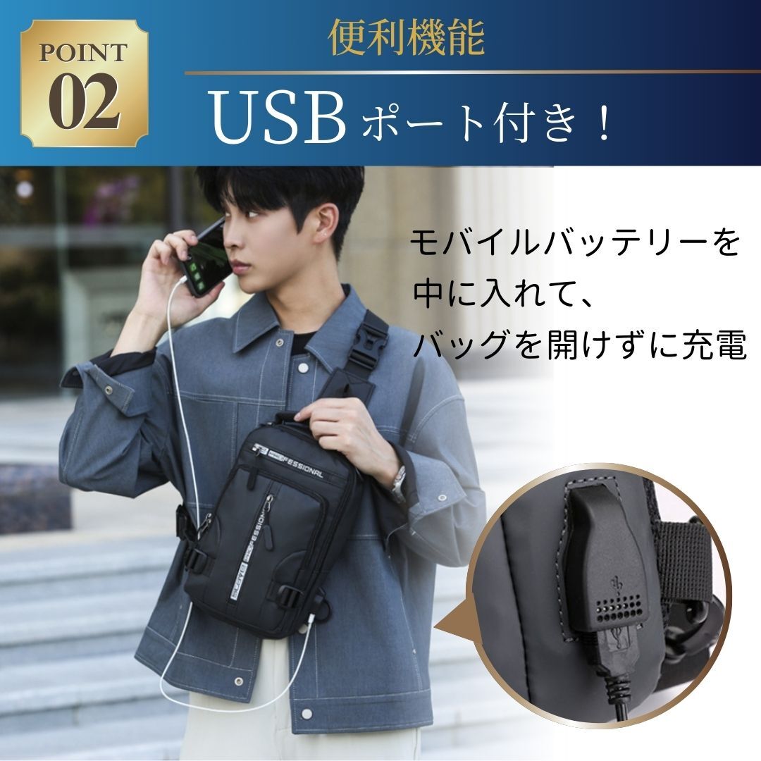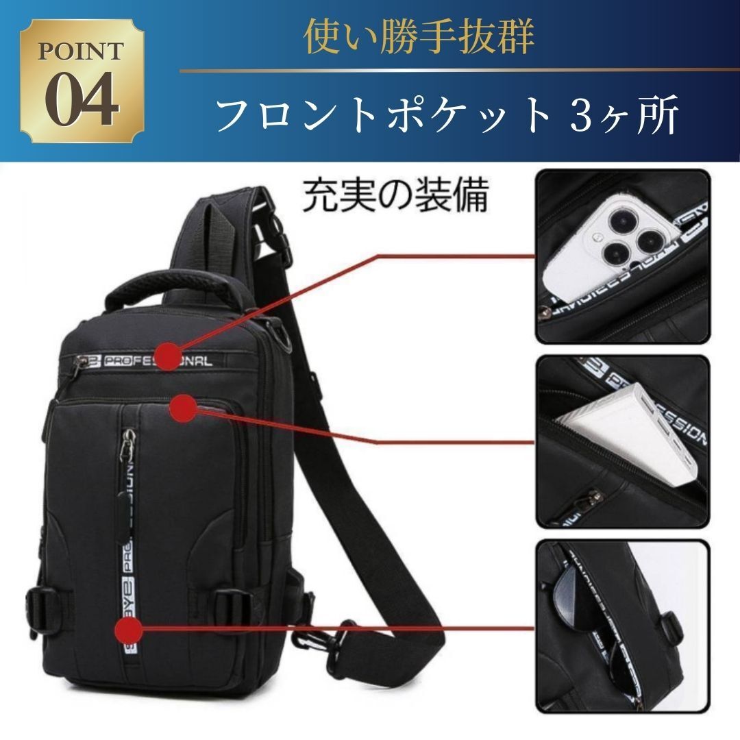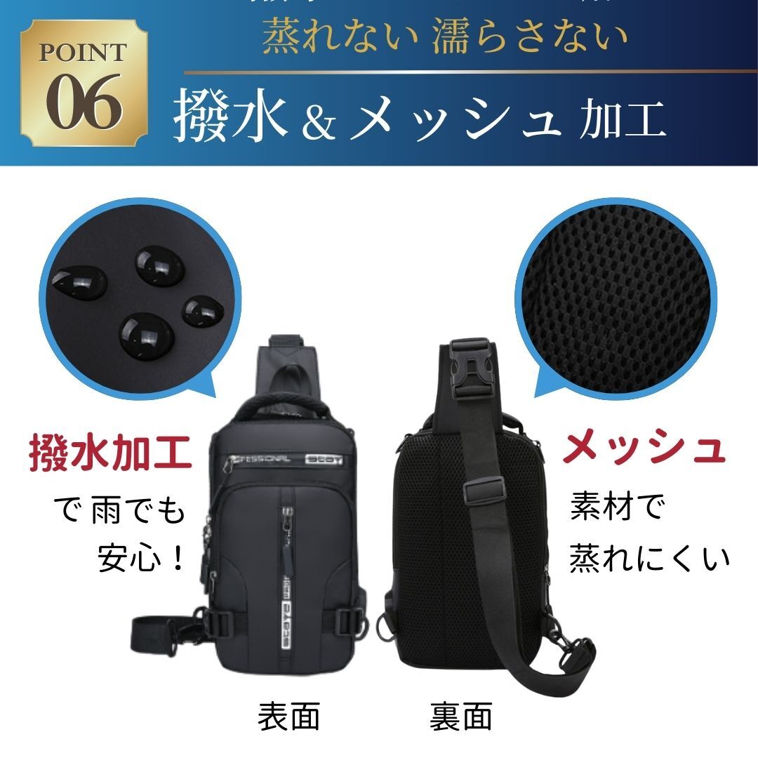 ボディバッグ ショルダーバッグ リュックサック 斜め掛け ワンショルダー USB 撥水 防水 多機能 メンズ レディース 4WAY ブラック 黒