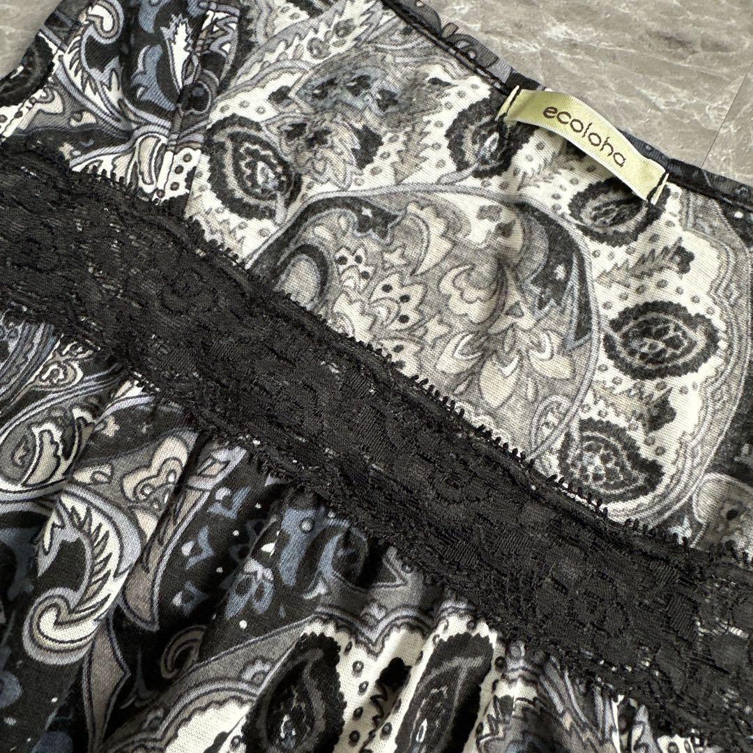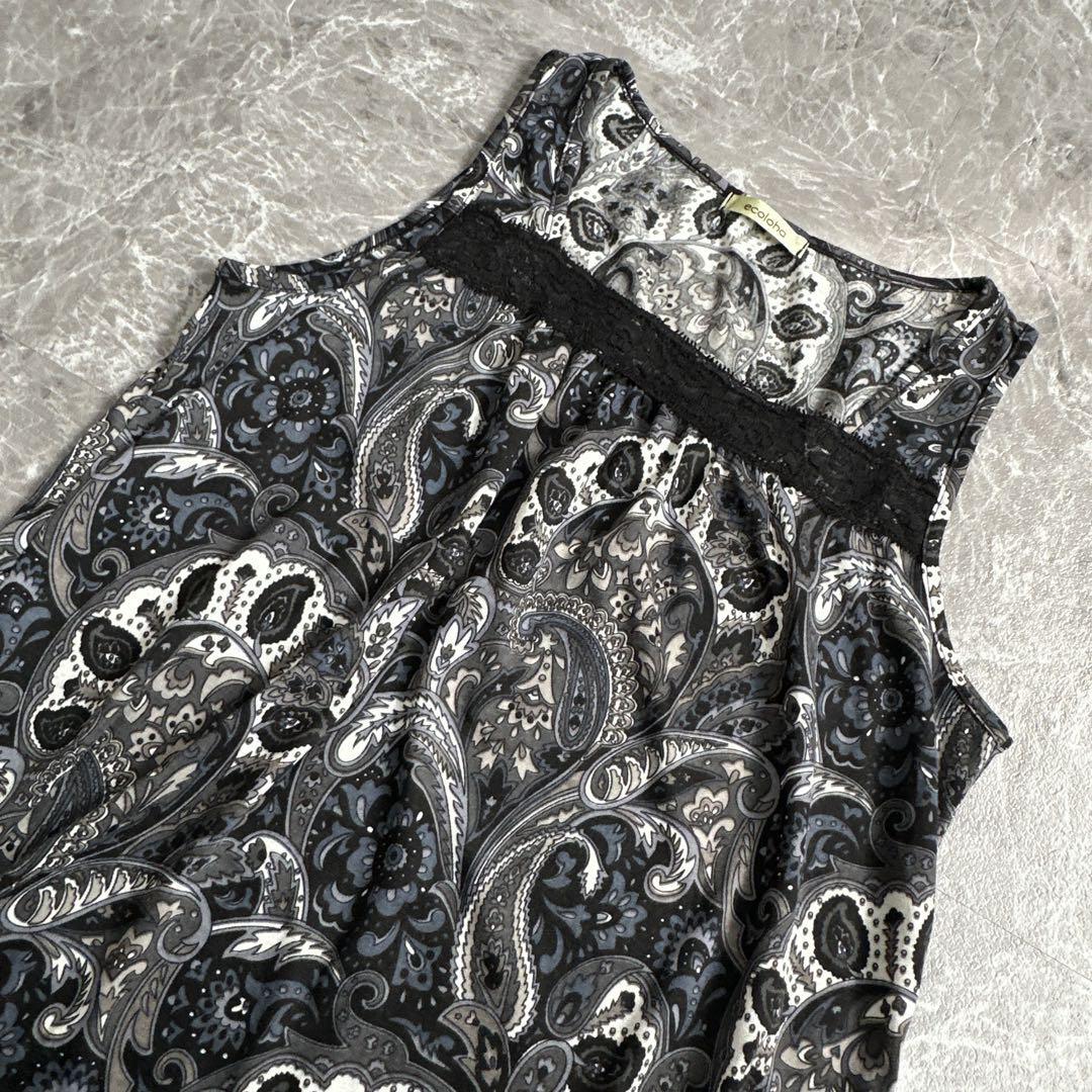 【ecoloha】エコロハ(L)ノースリーブカットソー*ペイズリー柄*花柄レース