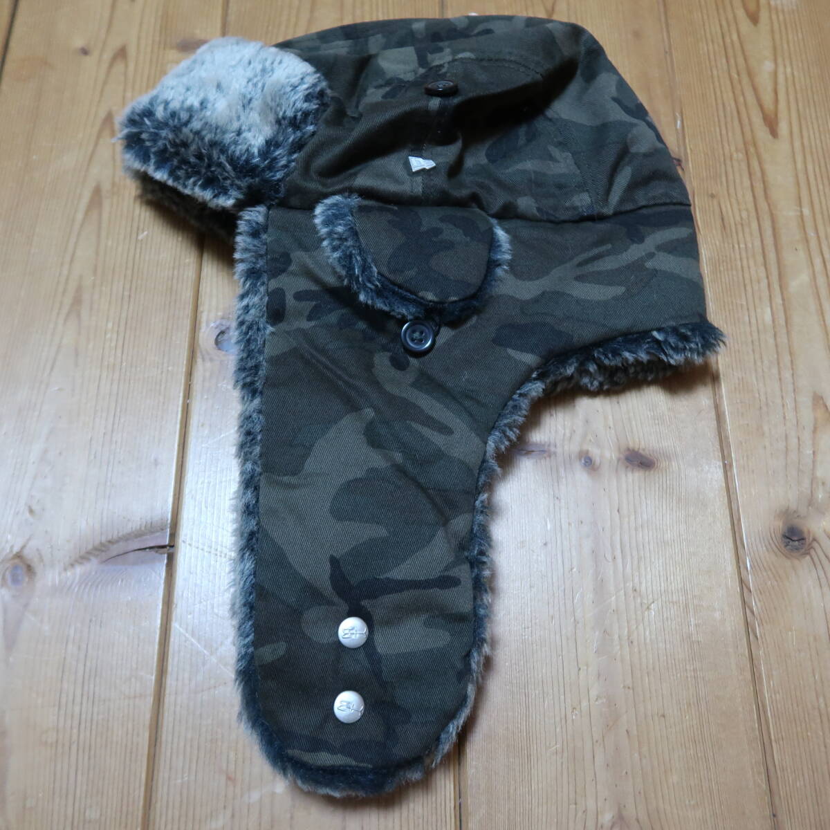 | ニューエラのフライトキャップ、ザ・トラッパーの中古品です。 以前、当オークションにて中古品として購入し、試着したのみで保管していたものです。 中古品ですが、特にダメージもなく美品と思います。 当方の頭の形のせいもあるのか、Lサイズにしては少し小さめに感じたので、出品します。 なお、送料は当方が負担しますので、この機会にいかがでしょうか? 【商品概要】 ◆カラー/カモフラージュ ◆サイズ/L(61cm) ◆素材/キャップ部/コットン100%、ファー部/アクリル70%・ポリエステル30% ◆製造国/中国  | ||