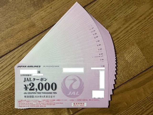 JALクーポン 2,000×48枚 \96,000分 有効期限2026年9月末 送料無料(簡易書留)