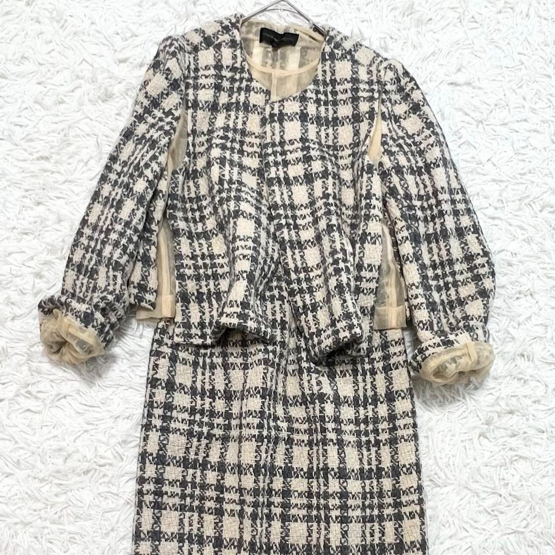 上下セットはもちろん、ジャケット単品・スカート単品でも幅広い着こなしが可能で、フォーマルからモードスタイルまで活躍します。