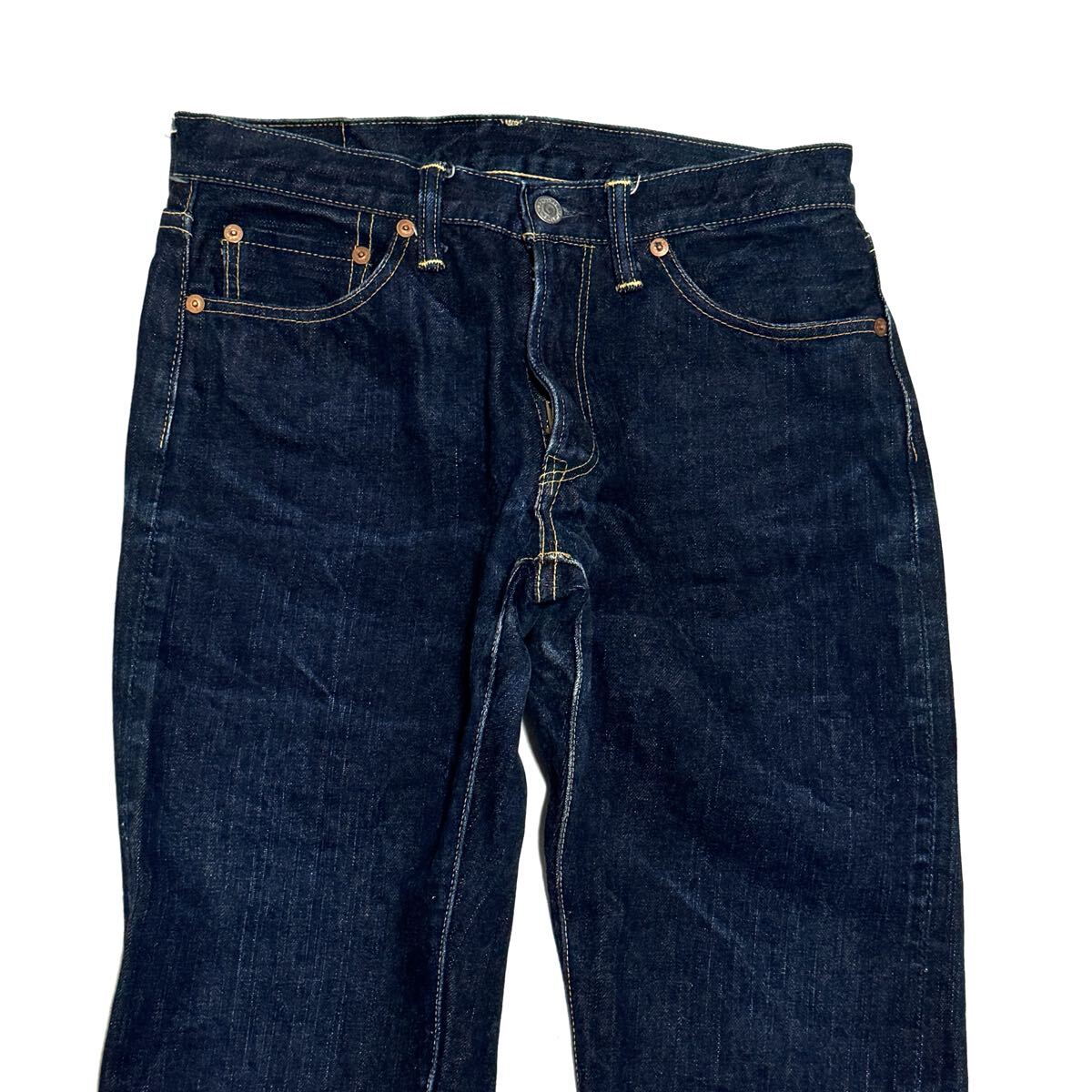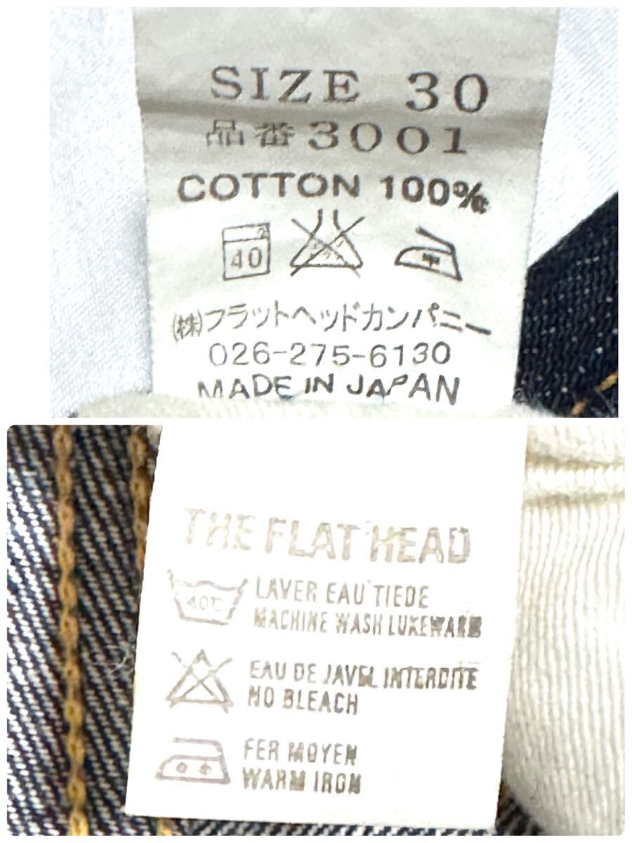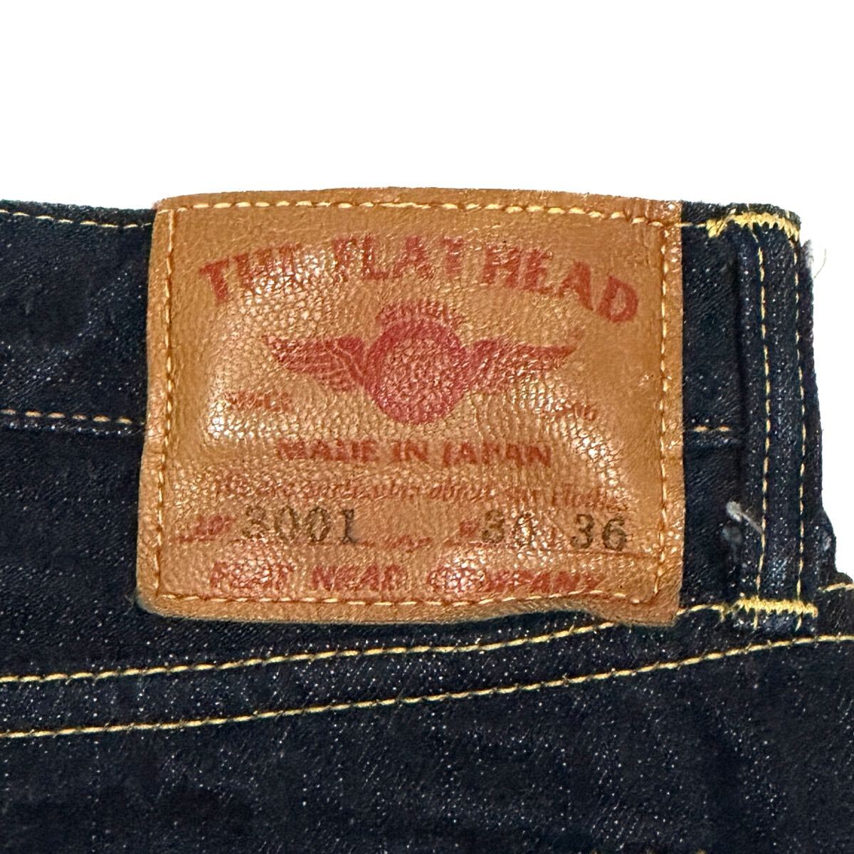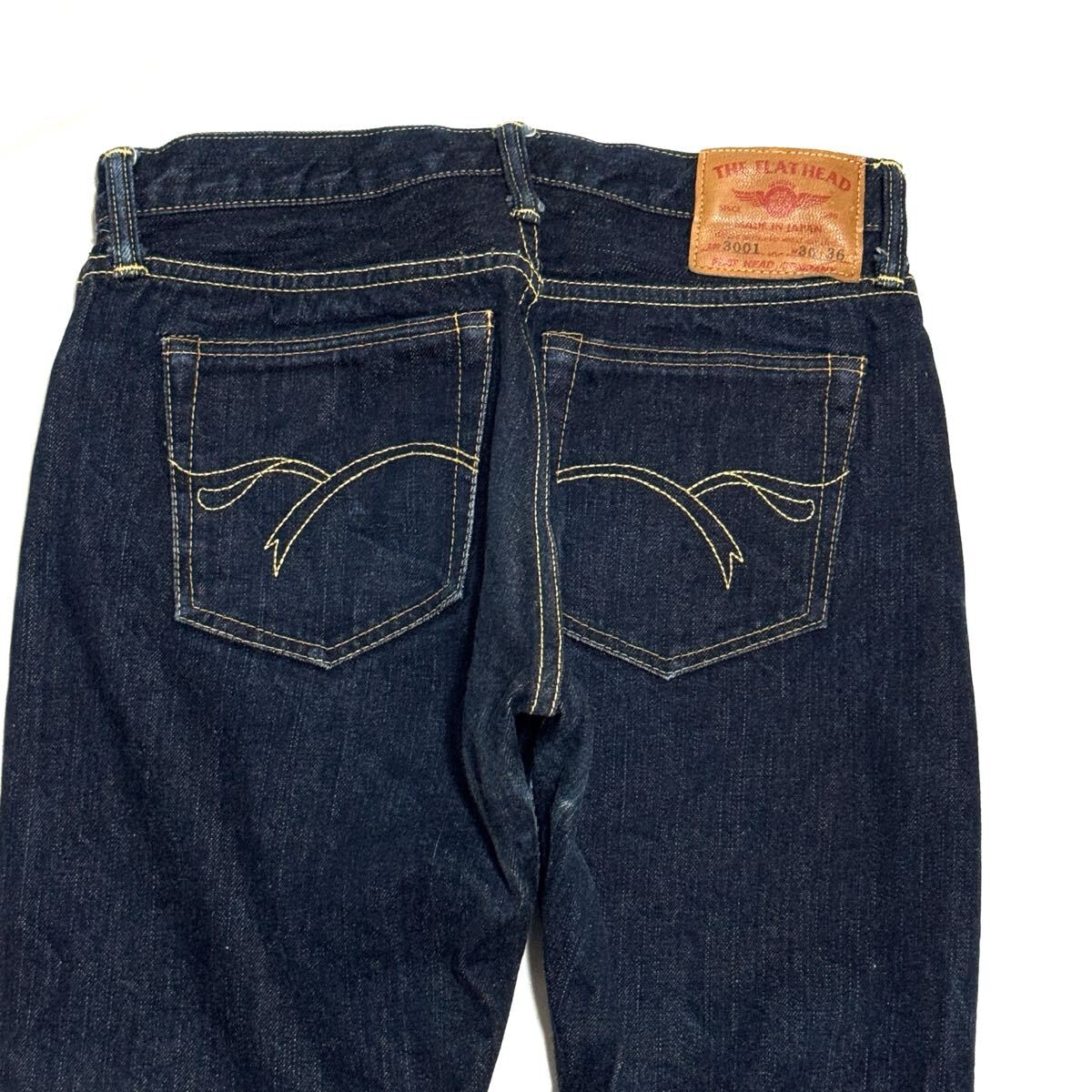 THE FLAT HEADの名作モデル「3001」。日本製セルビッチ仕様のストレートデニムです。肉厚なコットン100%デニムが美しい色落ちを楽しめます。W30 L36の希少サイズ、美品コンディション。テーパードの少ない王道ストレートシルエットで、経年変化を楽しみたい方におすすめです。
