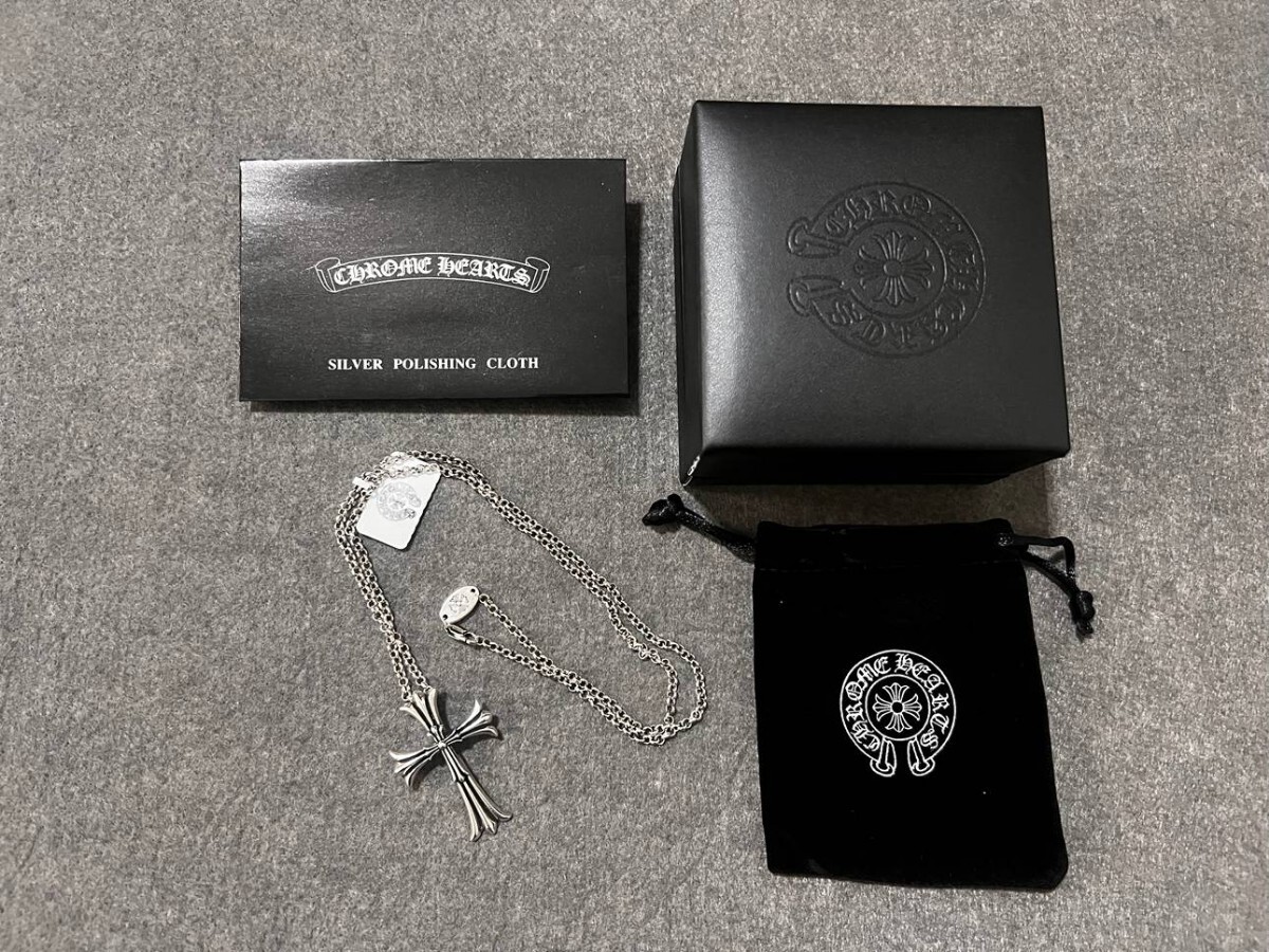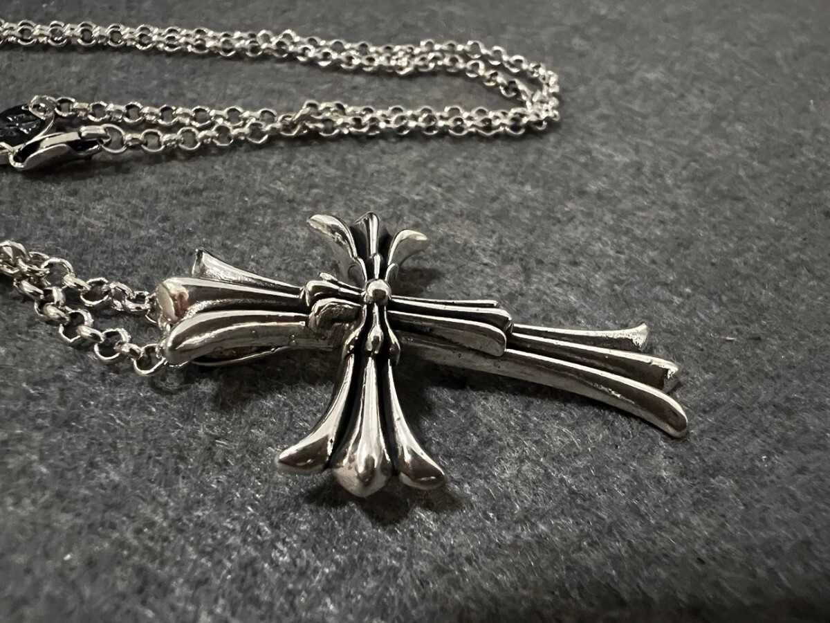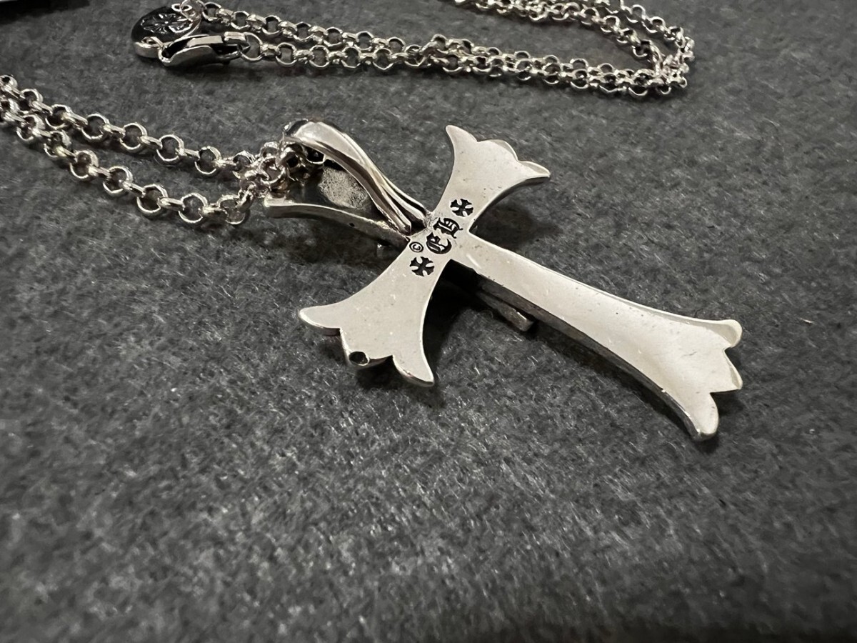 サイズ - 首周りの長さ約57.5cm ペンダントトップ:大きなクロスの高さ約4.2cm、幅約2.8cm/小さなクロスの高さ約1.5cm、幅約1cm