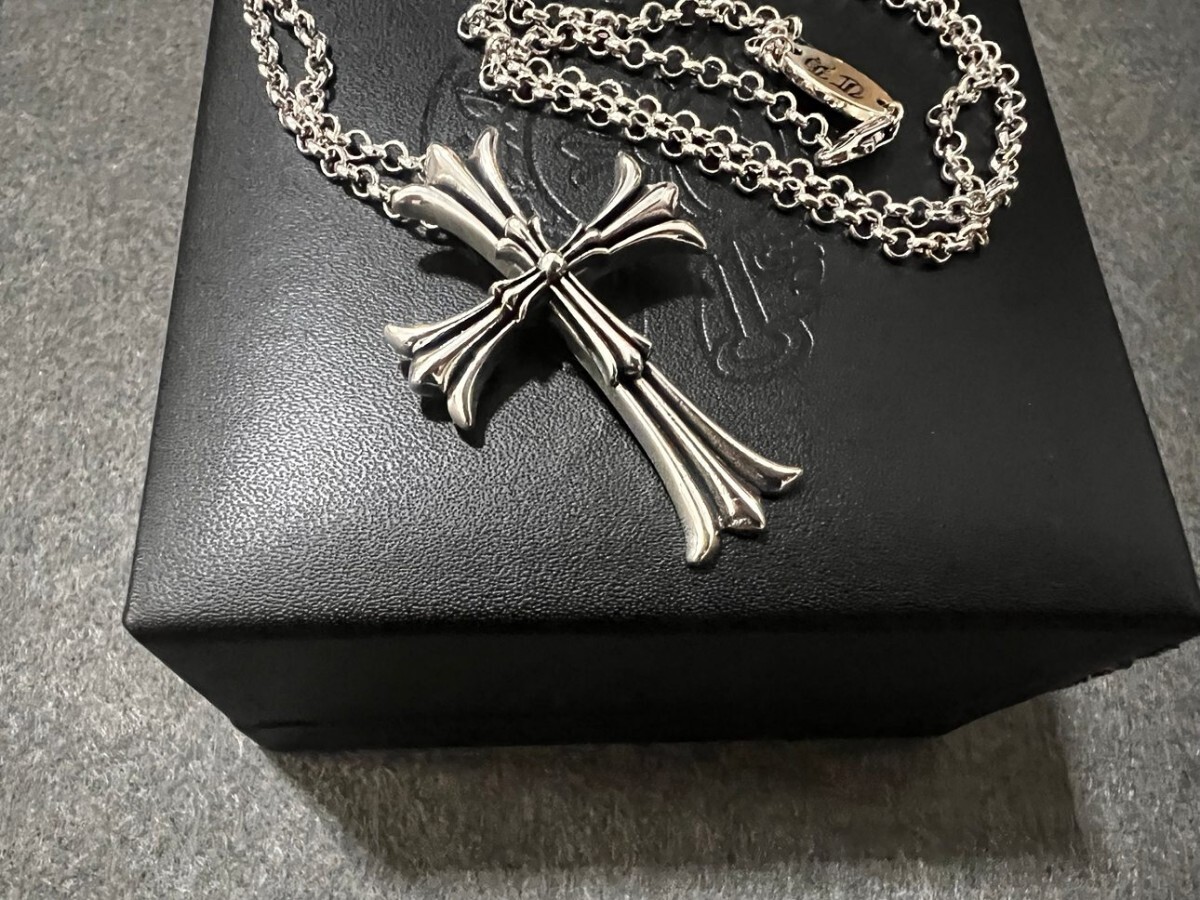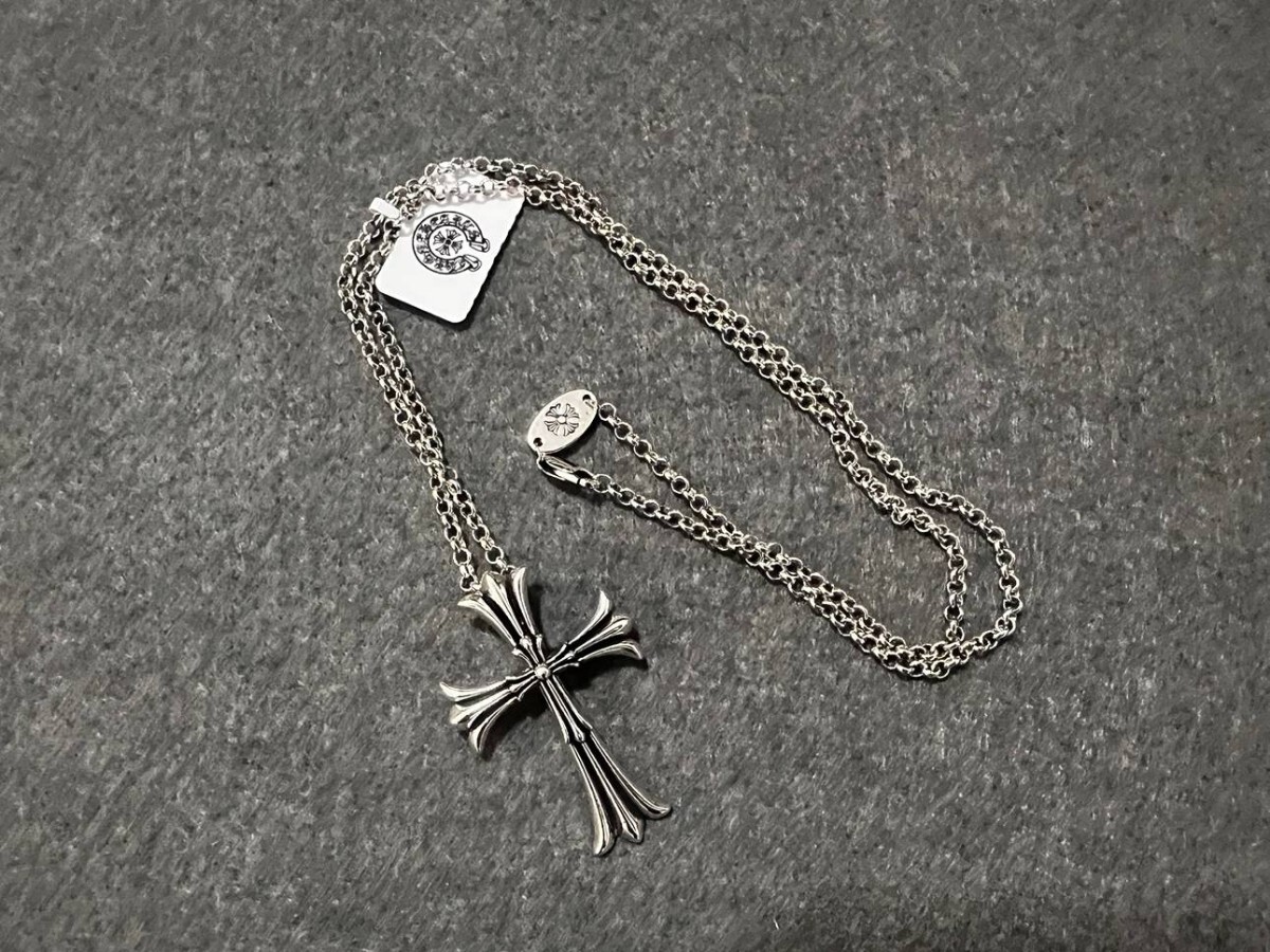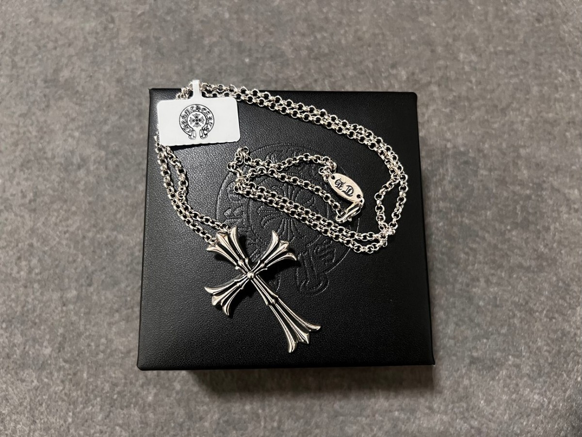 サイズ - 首周りの長さ約57.5cm ペンダントトップ:大きなクロスの高さ約4.2cm、幅約2.8cm/小さなクロスの高さ約1.5cm、幅約1cm