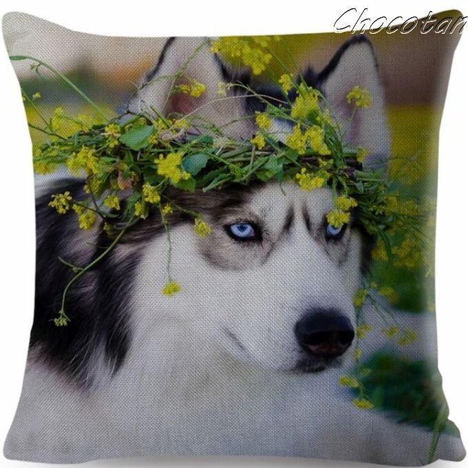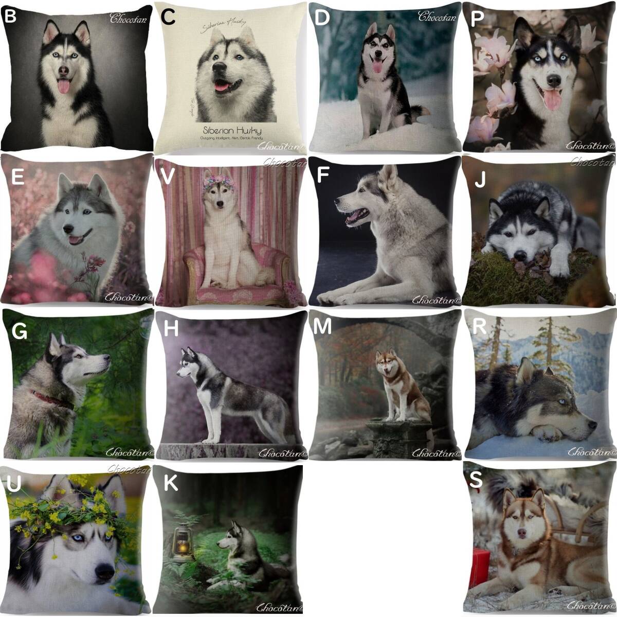 【送料無料】シベリアンハスキー U コットンリネン 45x45cm クッションカバー【新品】