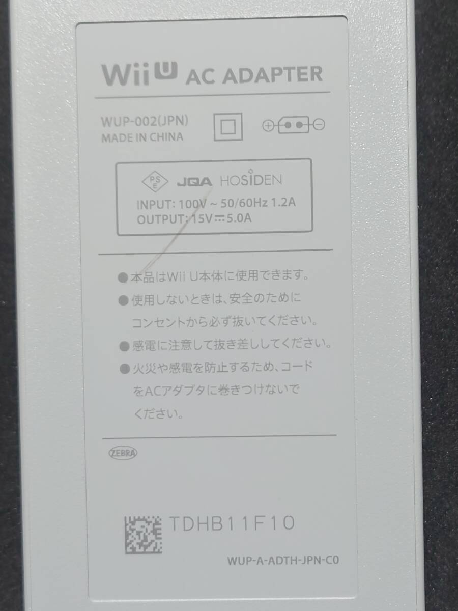 ・純正 WiiU 本体 専用 ACアダプター WUP-002:WiiU持ち合わせていないのでテスターでDC出力確認し正常通電している事を確認いたしました。