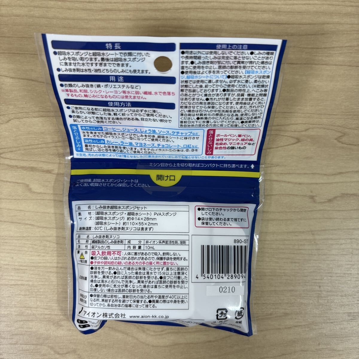 衣類の救急 しみ抜き超吸水スポンジセット しみ抜き剤ヌリコ付き