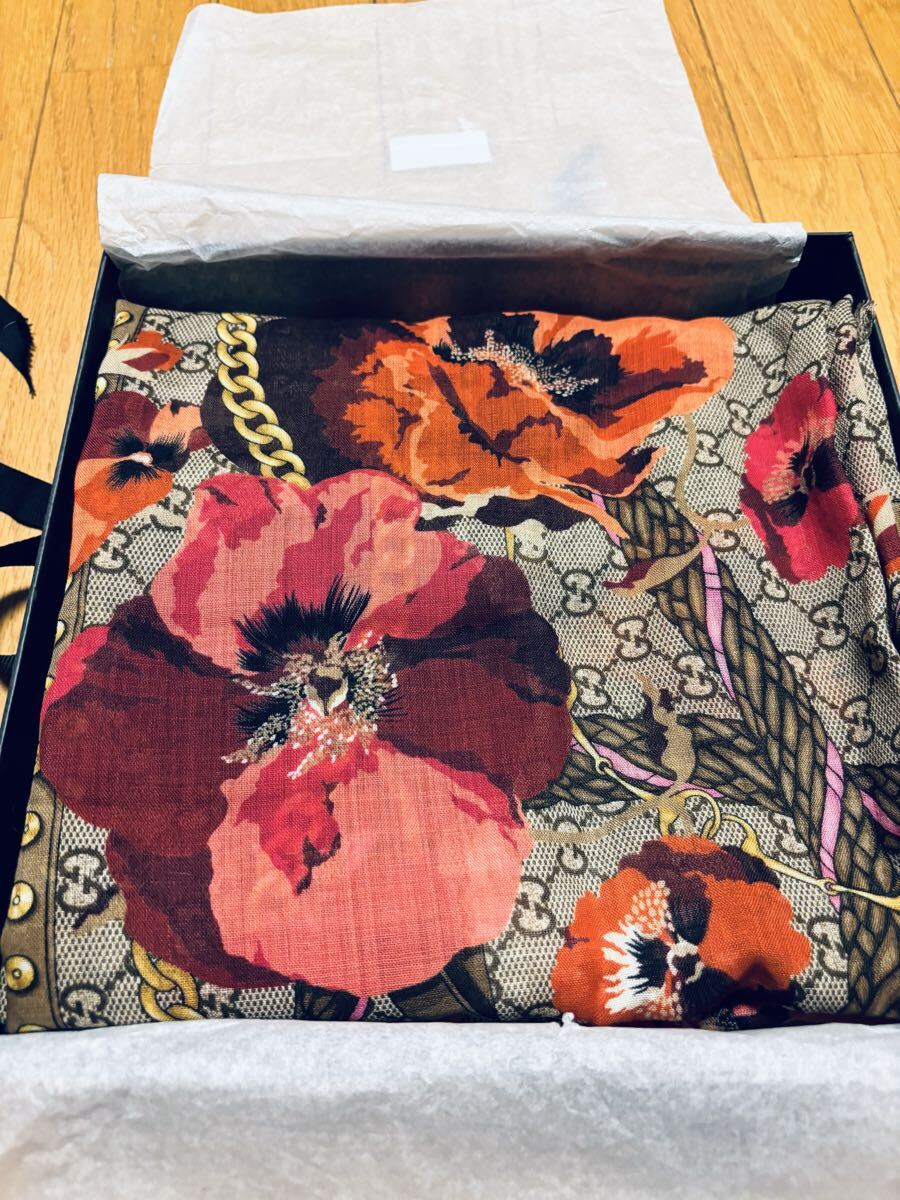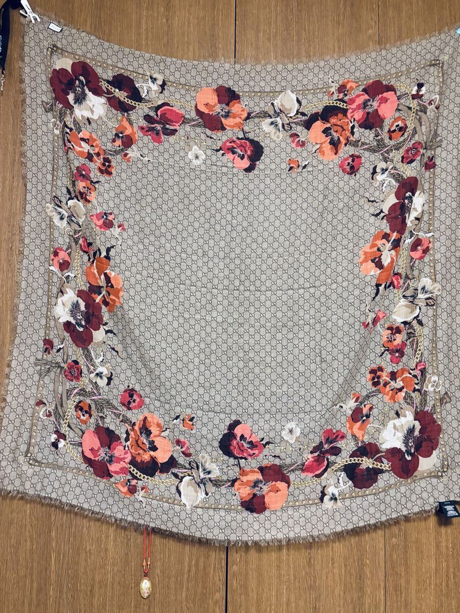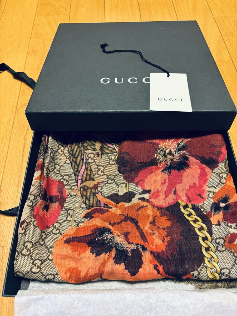 新品 稀少品 サイズ・ 140 x 140 cm大判スカーフ・ブランド・GUCCI ・色はとてもきれい・珍しいです・