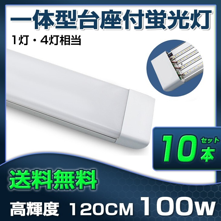 超高輝度 送料無料 10本 100W 直管LED蛍光灯 一体型台座付 1灯・4灯相当 50W 100W形相当 昼光色6000K 6畳以上用 AC110V D19