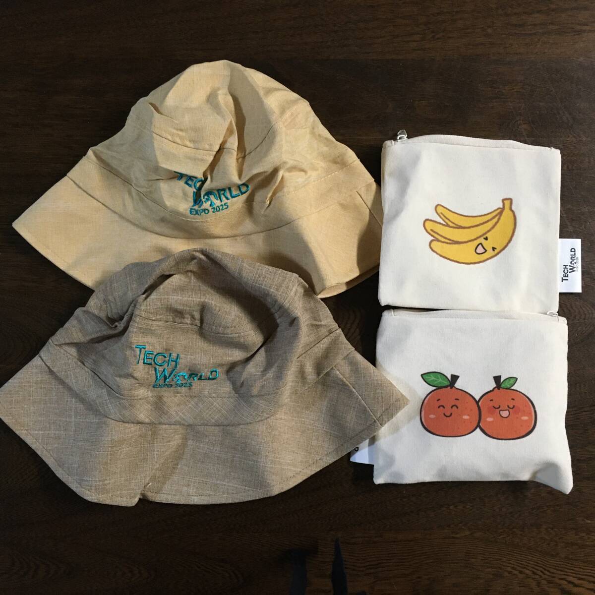 未使用 関西万博 テックワールド ノベルティ ポーチ付帽子 2個セット 送料込