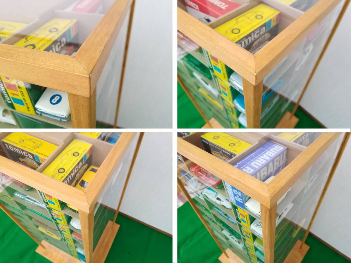 素材: 前面・3ミリアクリル板 外枠・木製 中仕切り・MDF(中質木材繊維板)